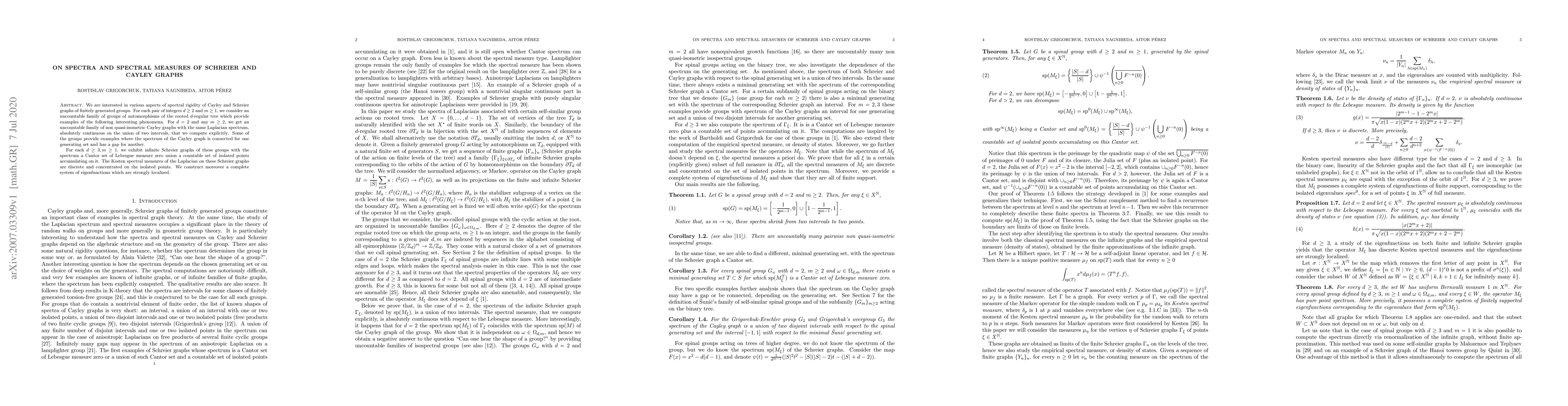 We are interested in various aspects of spectral rigidity of Cayley and Schreier graphs of finitely generated groups. For each pair of integers $d\geq 2$ and $m \ge 1$, we consider an uncountable family of groups of automorphisms of the rooted $d$-regular tree which provide examples of the following interesting phenomena. For $d=2$ and any $m\geq 2$, we get an uncountable family of non quasi-isometric Cayley graphs with the same Laplacian spectrum, absolutely continuous on the union of two intervals, that we compute explicitly. Some of the groups provide examples where the spectrum of the Cayley graph is connected for one generating set and has a gap for another. For each $d\geq 3, m\geq 1$, we exhibit infinite Schreier graphs of these groups with the spectrum a Cantor set of Lebesgue measure zero union a countable set of isolated points accumulating on it. The Kesten spectral measures of the Laplacian on these Schreier graphs are discrete and concentrated on the isolated points. We construct moreover a complete system of eigenfunctions which are strongly localized.