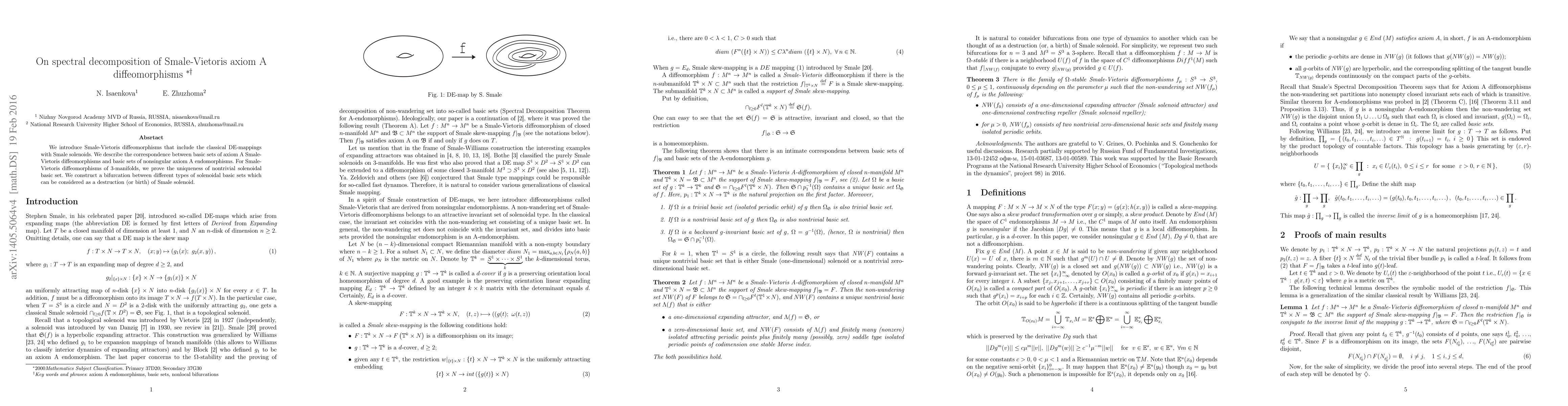 This paper introduces Smale-Vietoris diffeomorphisms, linking them to classical DE-mappings and Smale solenoids, and establishes a correspondence between their basic sets and those of nonsingular axiom A endomorphisms. It proves the uniqueness of nontrivial solenoidal basic sets in 3-manifolds and describes a bifurcation leading to the destruction or birth of Smale solenoids.