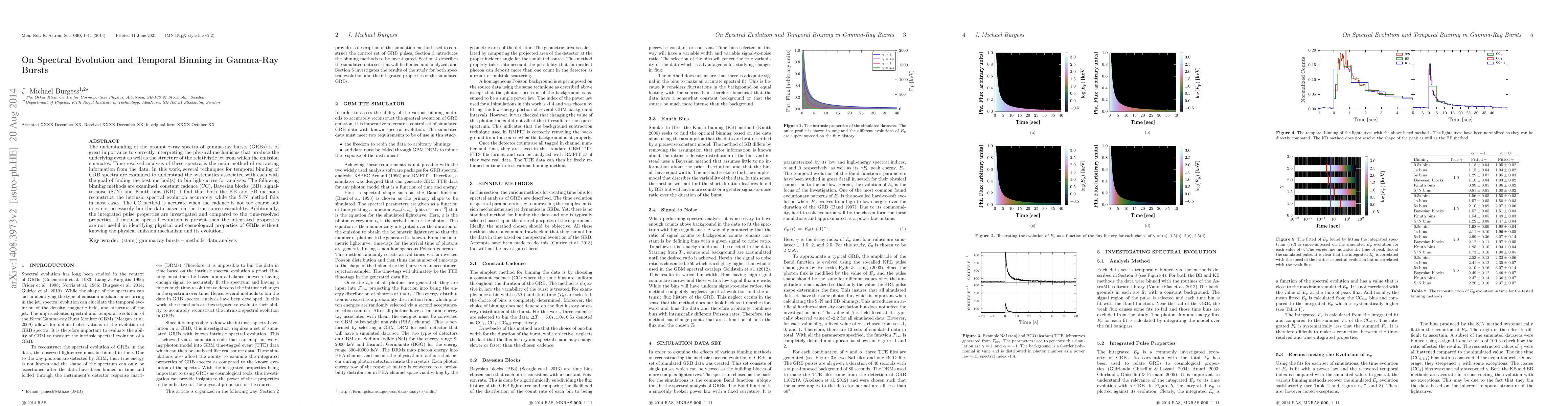 This paper examines various temporal binning techniques for analyzing gamma-ray burst (GRB) spectra, finding that Knuth bins and Bayesian blocks accurately reconstruct spectral evolution, while signal-to-noise binning often fails. It concludes that integrated pulse properties are insufficient for identifying GRB physical and cosmological properties without knowing the emission mechanism's evolution.