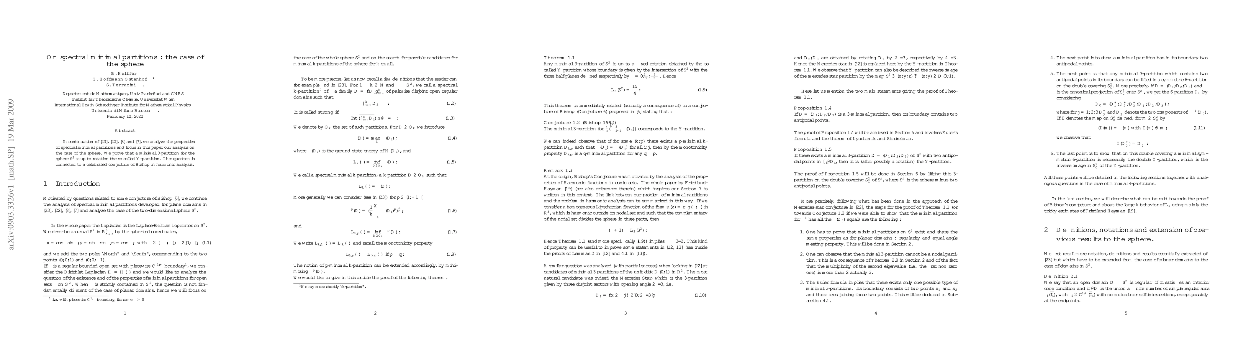 The paper presents a detailed analysis of spectral minimal partitions on the sphere, deriving sharp results and proving key propositions and theorems related to nodal domains and eigenvalues.