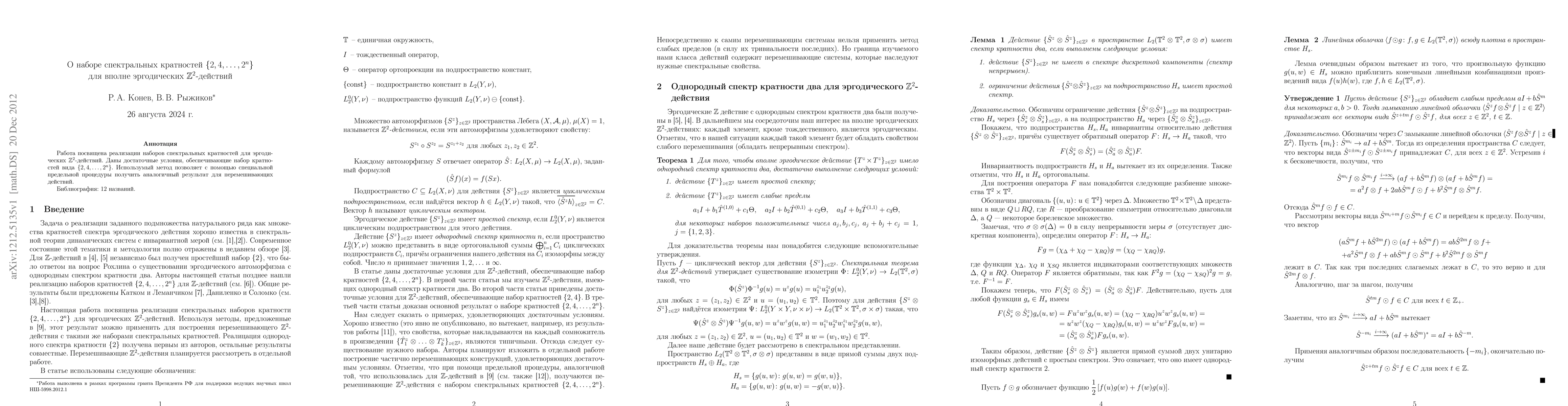 For totally ergodic Z^2-actions a collection of weak limits provide the set {2,4, ..., 2 ^ n} of spectral multiplicities for their tensor product. Our conditions allow to obtain a similar result for mixing actions via some limit procedure.