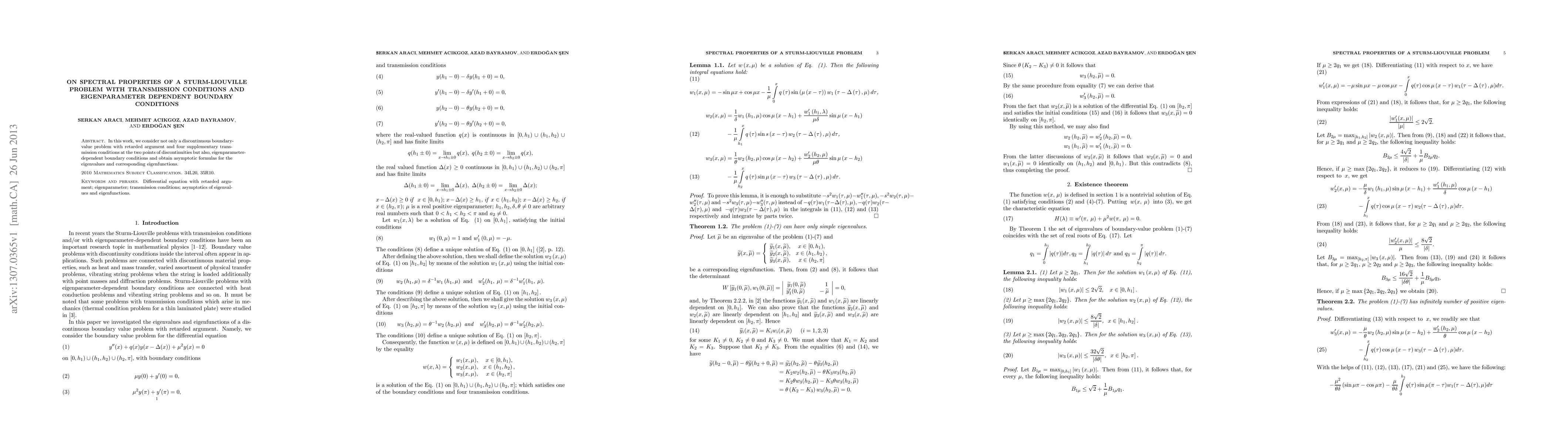 Summary: This paper investigates a Sturm-Liouville problem featuring a discontinuous boundary-value problem with a retarded argument, transmission conditions, and eigenparameter-dependent boundary conditions, deriving asymptotic formulas for eigenvalues and eigenfunctions.
