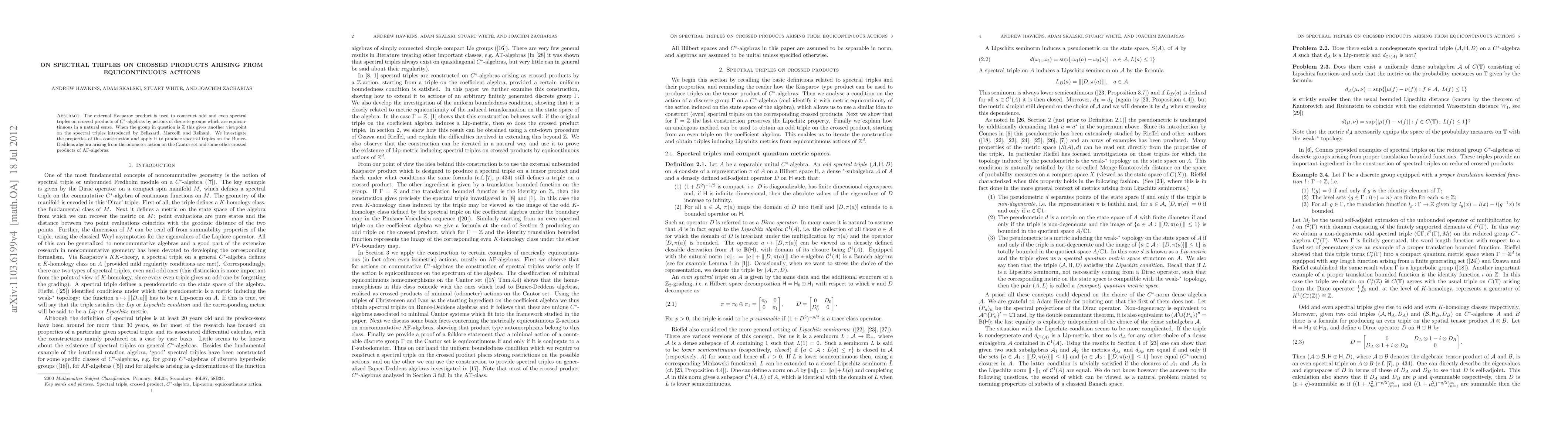 This paper constructs spectral triples on crossed products of $C^*$-algebras via the external Kasparov product, focusing on equicontinuous actions. It applies this construction to produce spectral triples on the Bunce-Deddens algebra from the odometer action and other AF-algebra crossed products.