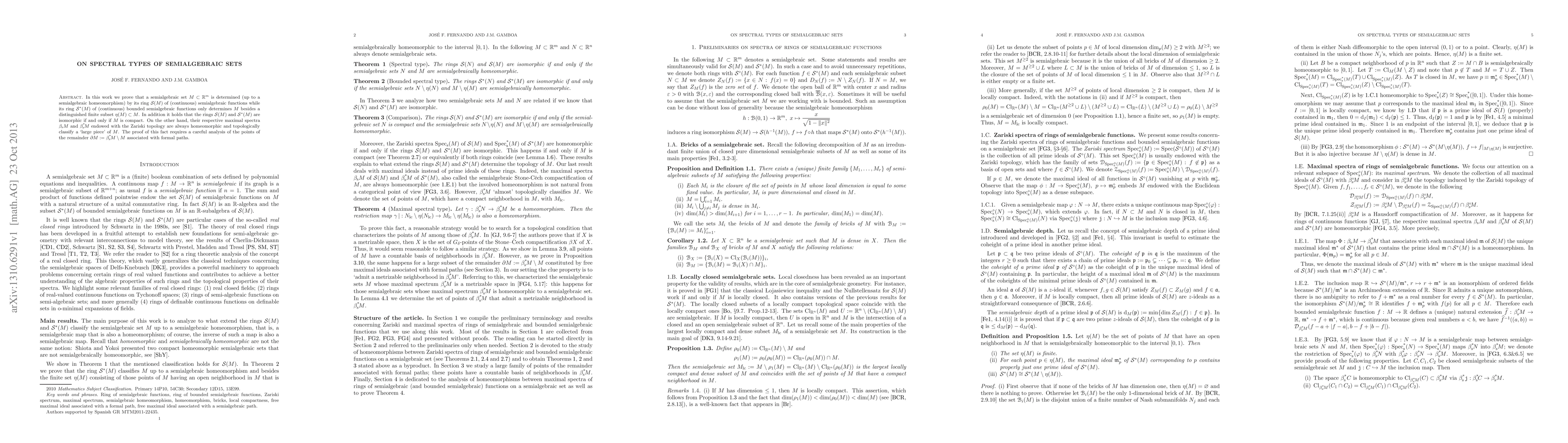 This research demonstrates that the ring of continuous semialgebraic functions uniquely determines a semialgebraic set up to semialgebraic homeomorphism, while the ring of bounded functions only determines it up to a finite subset. Compact sets exhibit an isomorphism between these two rings, and their maximal spectra are homeomorphic, classifying a significant portion of the set.