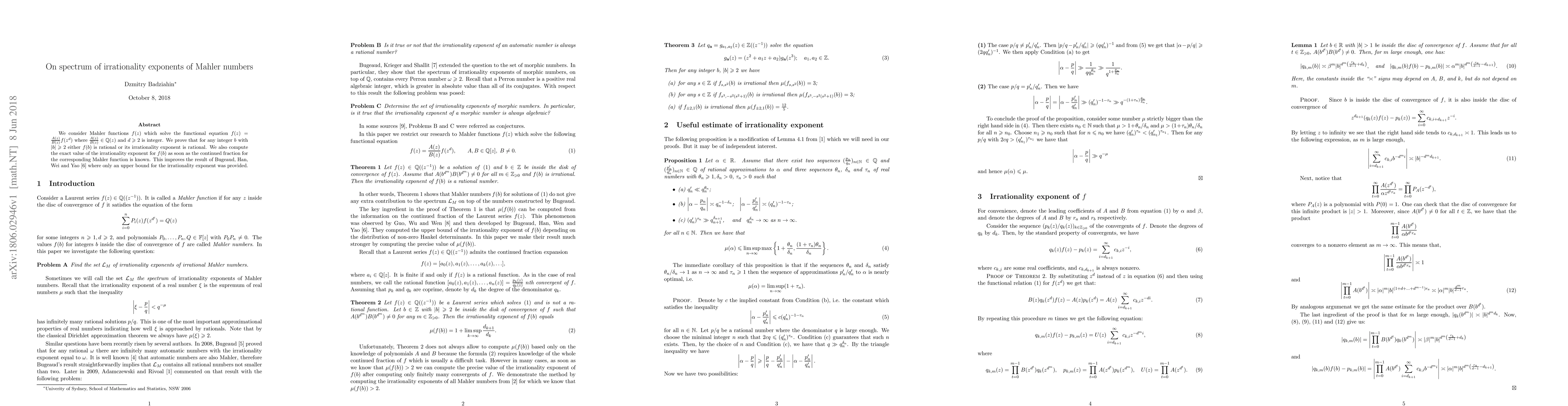 This paper proves that for Mahler functions, either f(b) is rational or its irrationality exponent is rational for |b| >= 2, improving a previous upper bound result.