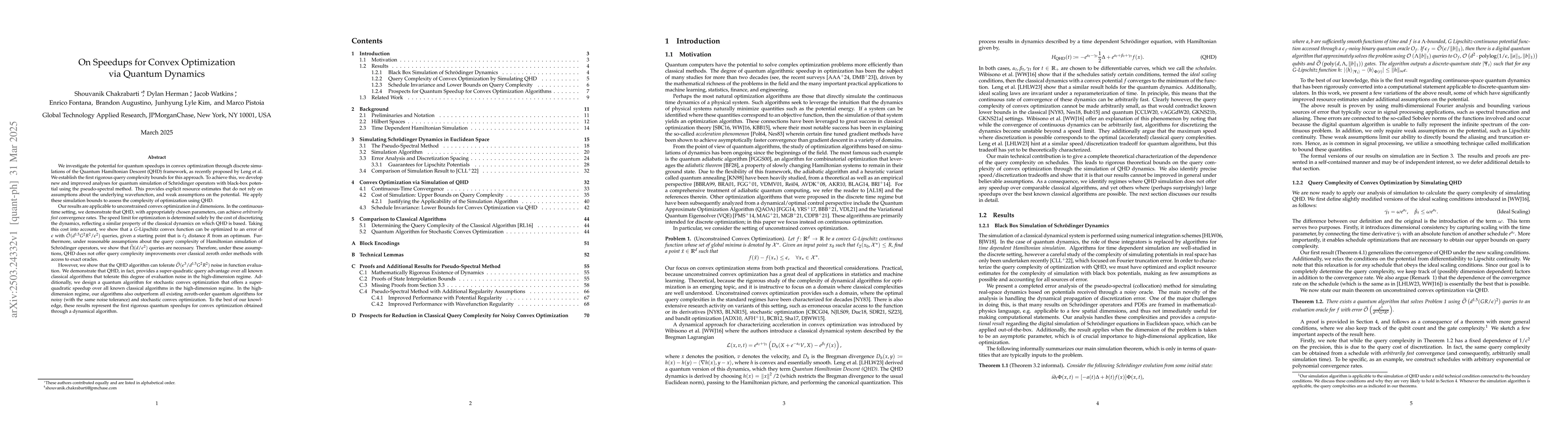 The paper presents enhanced analyses for quantum simulation of Schrödinger operators and provides explicit resource estimates, leading to query complexity bounds for convex optimization via QHD.