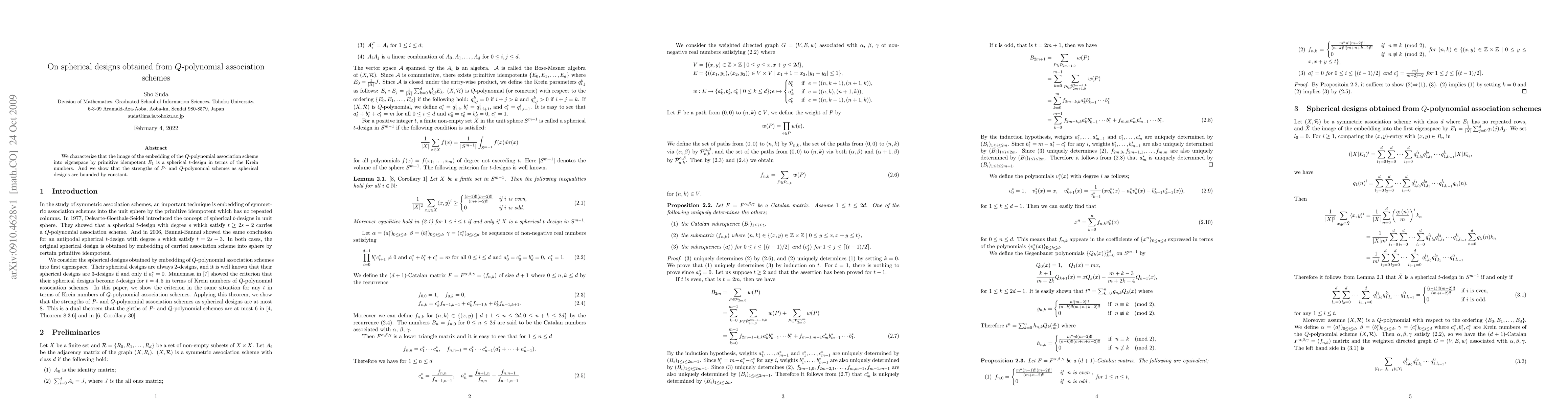 This paper characterizes the spherical $t$-designs derived from the embedding of $Q$-polynomial association schemes into eigenspaces via primitive idempotent $E_1$, linking these designs to Krein numbers. It also establishes that the effectiveness of $P$- and $Q$-polynomial schemes as spherical designs is bounded by a constant.