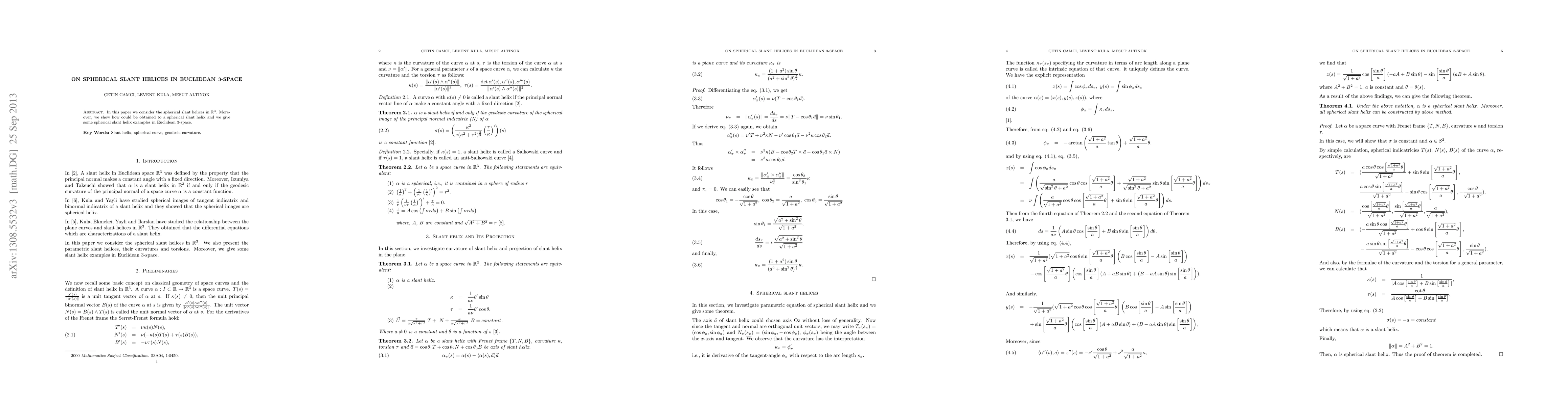 This paper explores spherical slant helices in $R^3$, detailing their derivation and providing examples of these geometric structures within Euclidean 3-space.