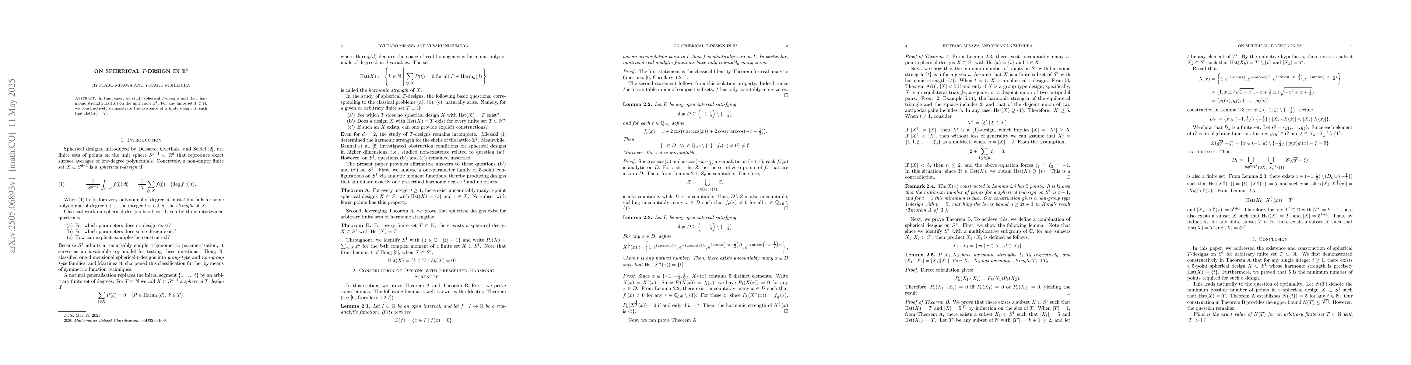 The paper presents a constructive proof of the existence of spherical T-designs with specified harmonic strength on the unit circle.