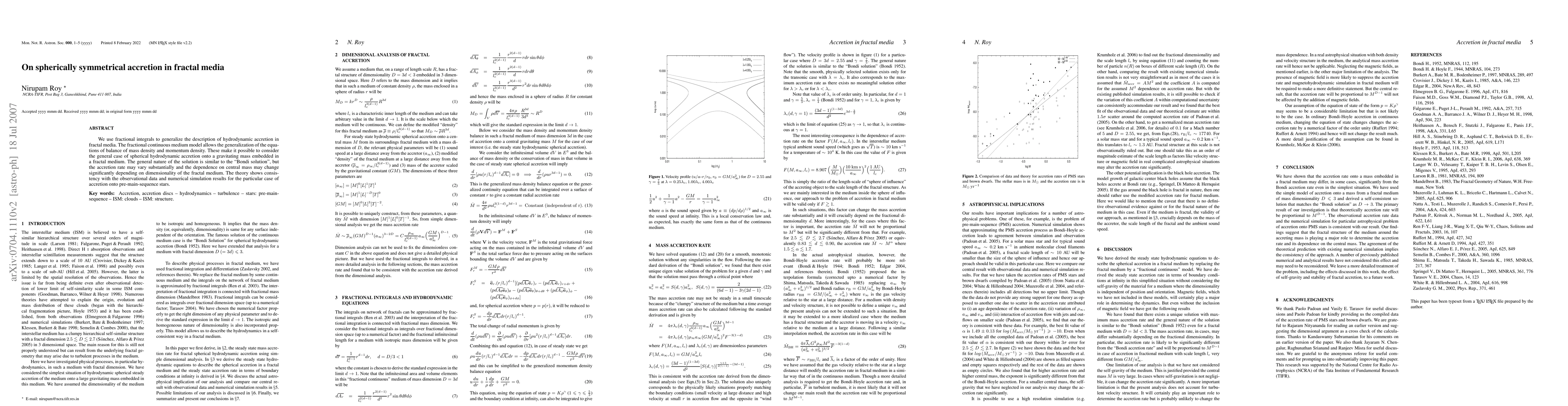 This paper generalizes hydrodynamic accretion models using fractional integrals in fractal media, showing that the accretion rate and its dependence on central mass can vary significantly based on the fractal medium's dimensionality. The results align with observational data and simulations for accretion onto pre-main-sequence stars.