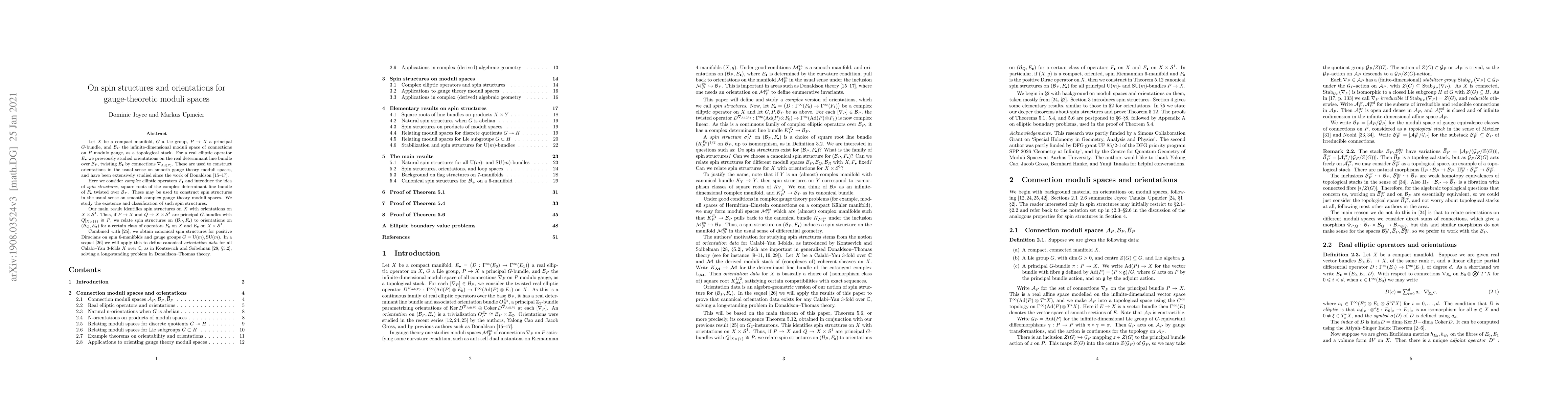 This paper explores the relationship between spin structures and orientations in gauge-theoretic moduli spaces, introducing spin structures for complex elliptic operators. It establishes a connection between spin structures on a manifold $X$ and orientations on $X \times S^1$, and resolves a longstanding problem in Donaldson-Thomas theory by defining canonical orientation data for Calabi-Yau 3-folds.