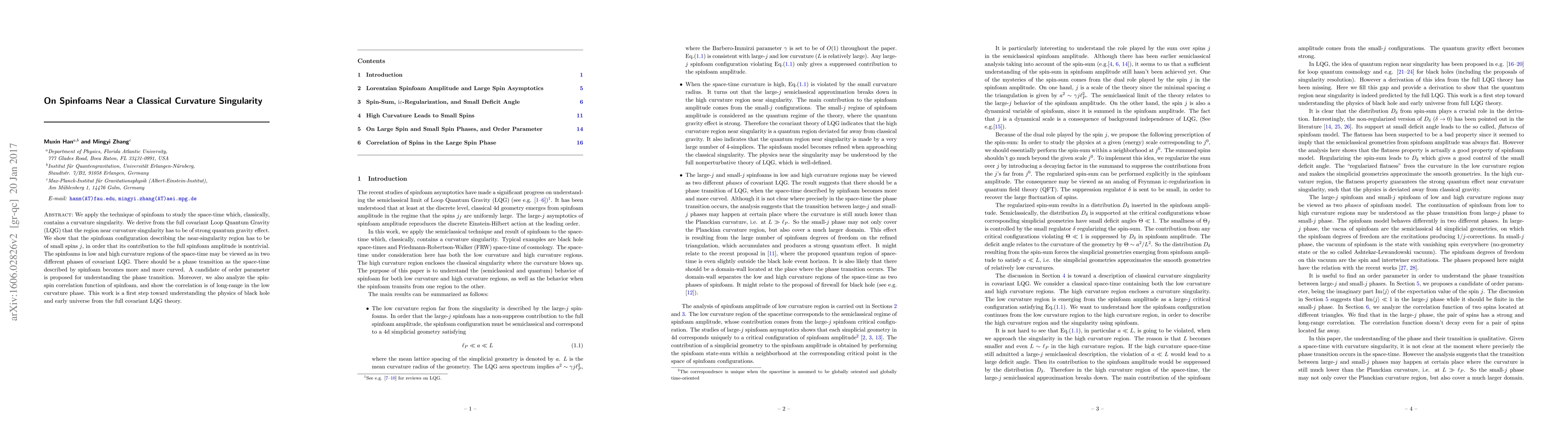 This research paper uses spinfoams to study space-time near a curvature singularity in quantum gravity theory, finding that small spins are necessary for non-trivial contributions and proposing a phase transition between low and high curvature regions.