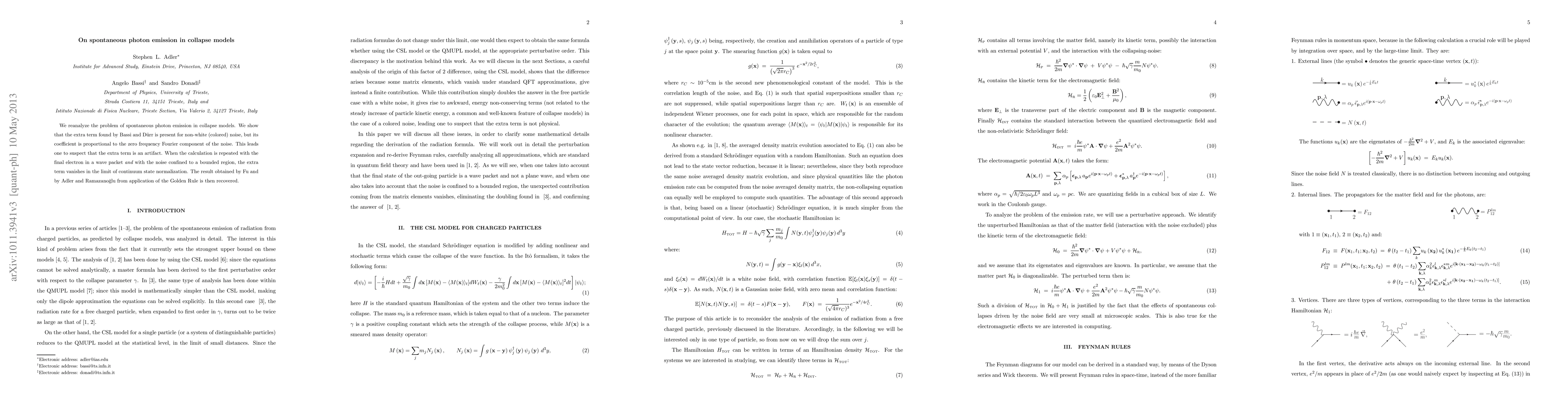 Researchers reanalyze spontaneous photon emission in collapse models, finding that an extra term is related to noise color and disappears when normalized as a continuum state.