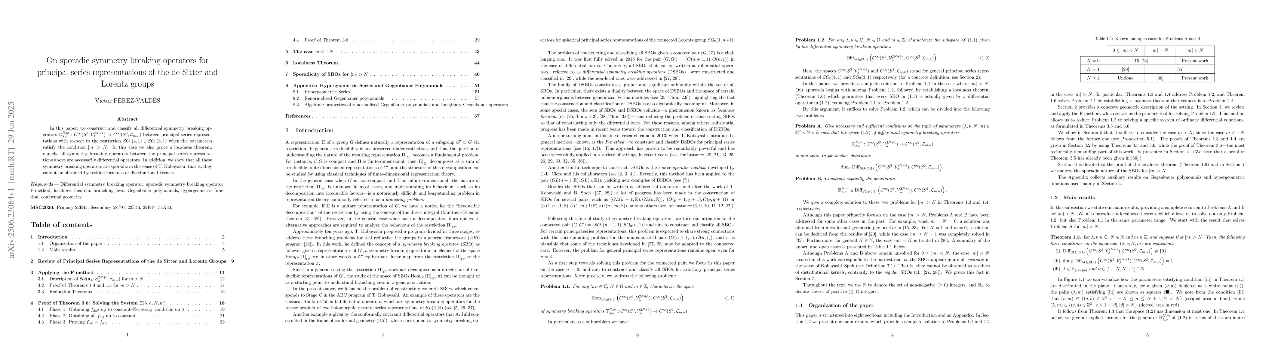 In this paper, we construct and classify all differential symmetry breaking operators $\mathbb{D}_{\lambda, \nu}^{N,m}: C^\infty(S^3, \mathcal{V}_\lambda^{2N+1})\rightarrow C^\infty(S^2, \mathcal{L}_{m, \nu})$ between principal series representations with respect to the restriction $SO_0(4,1) \downarrow SO_0(3,1)$ when the parameters satisfy the condition $|m| > N$. In this case we also prove a localness theorem, namely, all symmetry breaking operators between the principal series representations above are necessarily differential operators. In addition, we show that all these symmetry breaking operators are sporadic in the sense of T. Kobayashi, that is, they cannot be obtained by residue formulas of distributional kernels.