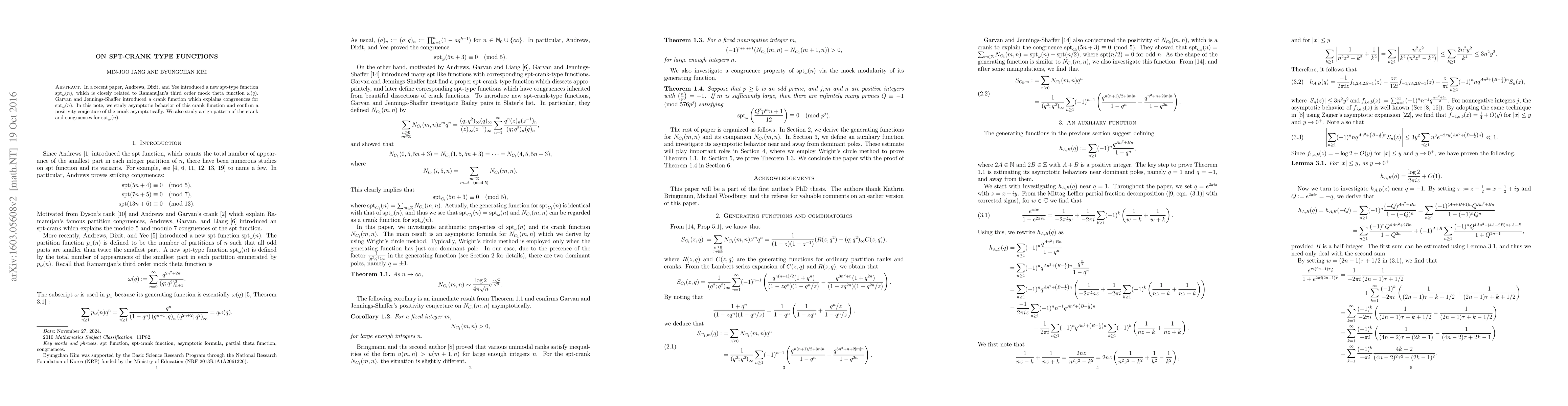 In a recent paper, Andrews, Dixit, and Yee introduced a new spt-type function $\operatorname{spt}_\omega(n)$, which is closely related to Ramanujan's third order mock theta function $\omega(q)$. Garvan and Jennings-Shaffer introduce a crank function which explains congruences for $\operatorname{spt}_\omega(n)$. In this note, we study asymptotic behavior of this crank function and confirm a positivity conjecture of the crank asymptotically. We also study a sign pattern of the crank and congruences for $\operatorname{spt}_\omega(n)$.