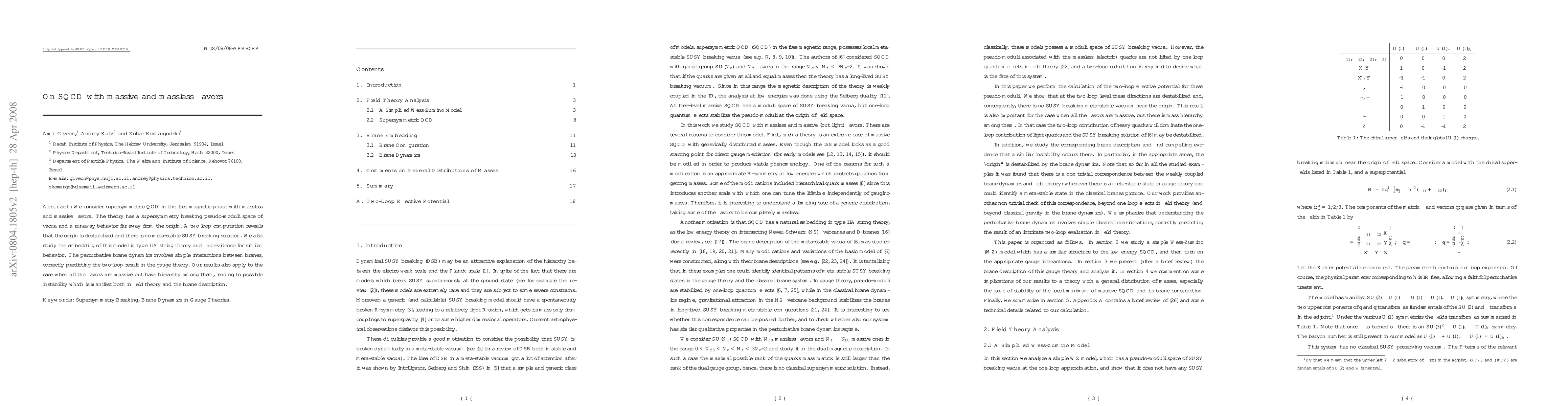This paper investigates supersymmetric QCD with both massless and massive flavors, finding no meta-stable supersymmetry breaking solutions due to a destabilized origin. The study also explores the model's embedding in type IIA string theory, revealing similar instability patterns in both field theory and brane dynamics.