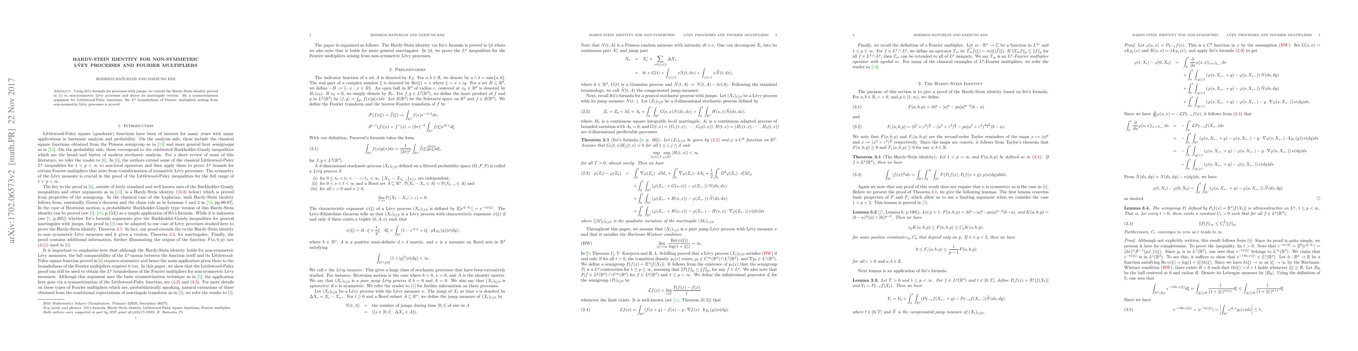 Using It\^o's formula for processes with jumps, we give a simple direct proof of the Hardy-Stein identity proved in \cite{BBL}. We extend the proof given in that paper to non-symmetric L\'evy-Fourier multipliers.