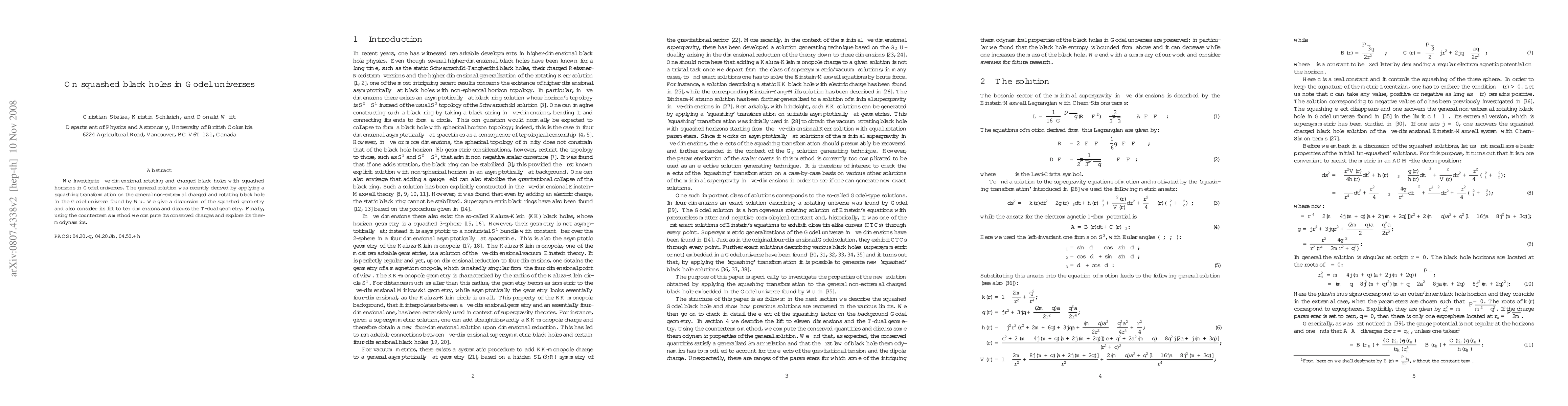 This paper explores five-dimensional rotating and charged black holes with squashed horizons within Godel universes, derived via a squashing transformation on Wu's solution. It analyzes the squashed geometry, lifts it to ten dimensions, discusses T-dual geometry, and computes conserved charges and thermodynamics using the counterterms method.
