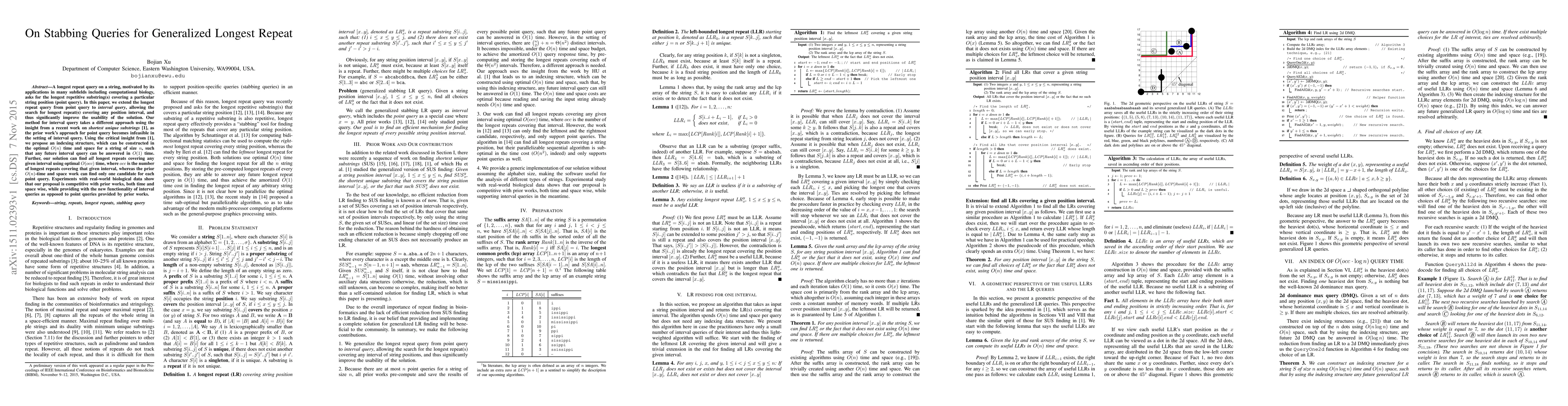 This research introduces an efficient method for interval queries in longest repeat analysis, improving upon previous point query methods. The proposed solution constructs an indexing structure in O(n) time and space, enabling O(1) time queries for all longest repeats in a given interval, unlike previous works that could only find one candidate per point query.