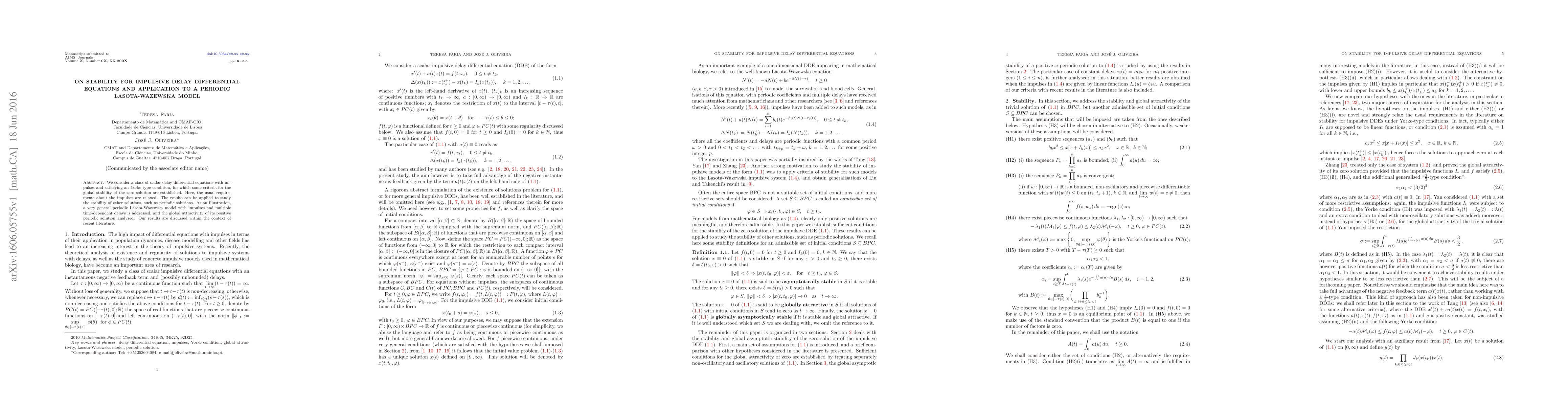 We consider a class of scalar delay differential equations with impulses and satisfying an Yorke-type condition, for which some criteria for the global stability of the zero solution are established. Here, the usual requirements about the impulses are relaxed. The results can be applied to study the stability of other solutions, such as periodic solutions. As an illustration, a very general periodic Lasota-Wazewska model with impulses and multiple time-dependent delays is addressed, and the global attractivity of its positive periodic solution analysed. Our results are discussed within the context of recent literature.