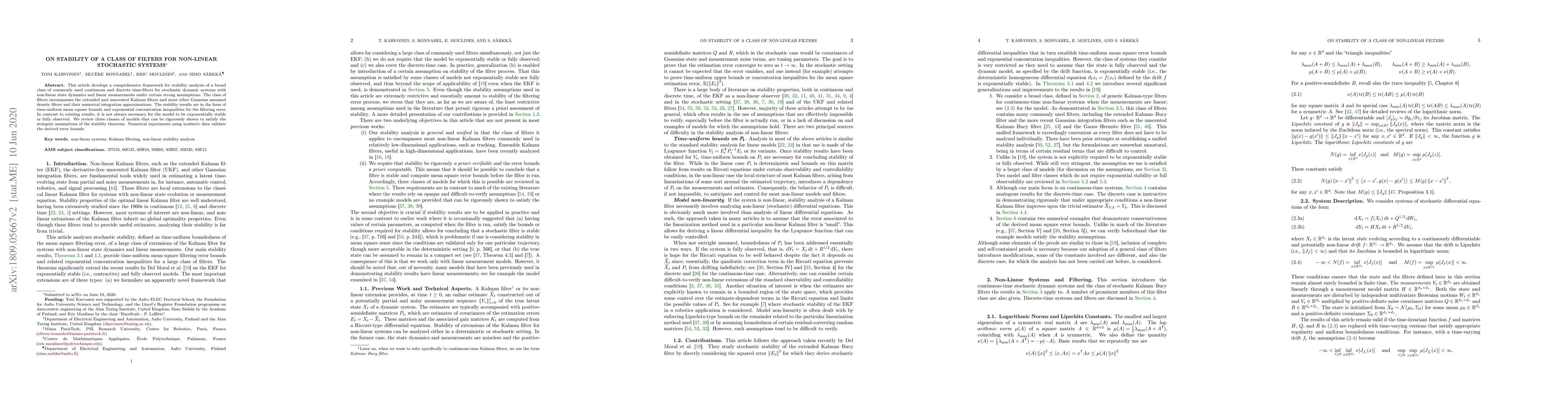 The research used a combination of theoretical analysis and numerical simulations to investigate the stability of non-linear Kalman filters.