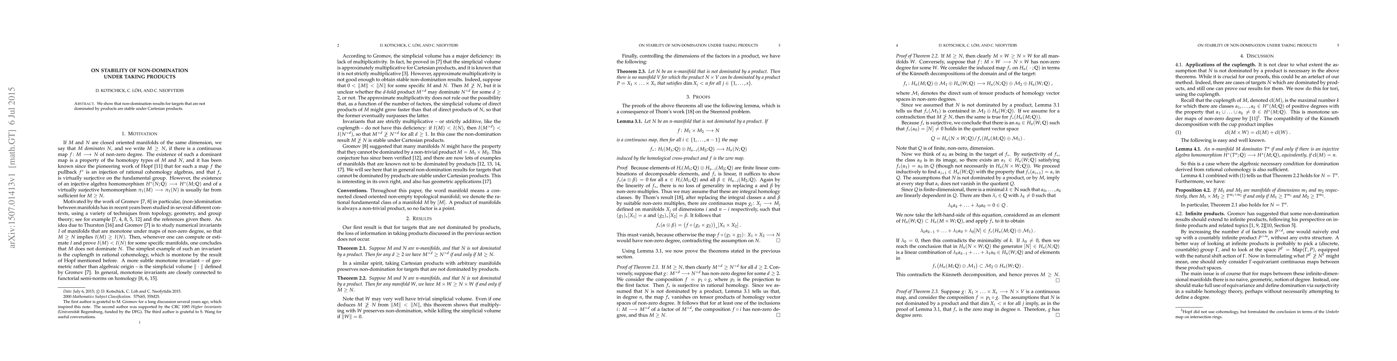 We show that non-domination results for targets that are not dominated by products are stable under Cartesian products.