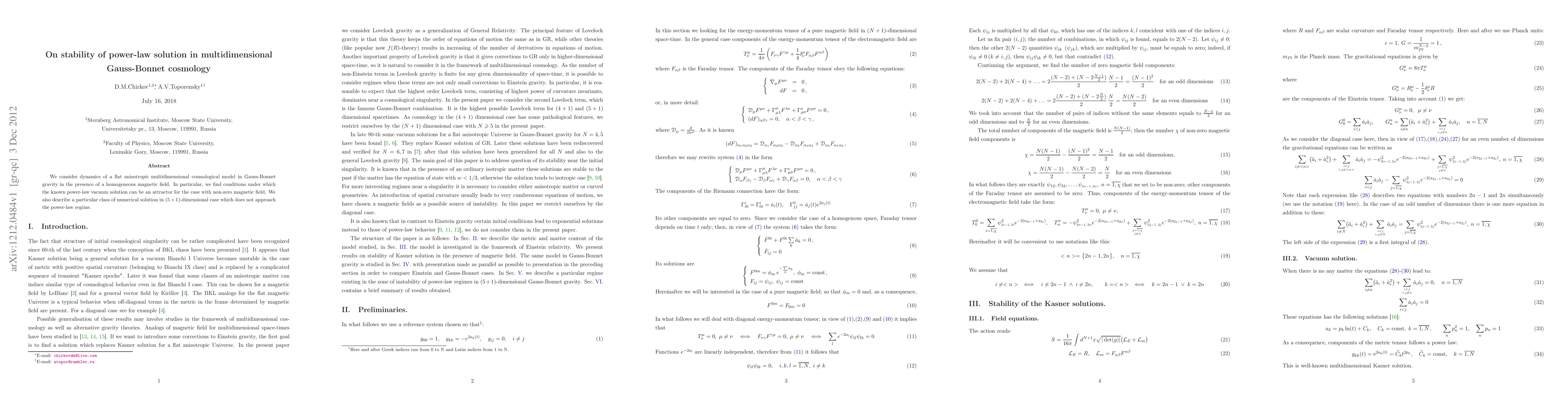 This paper examines the stability of a power-law vacuum solution in a multidimensional cosmological model within Gauss-Bonnet gravity, considering the influence of a homogeneous magnetic field. It identifies conditions under which the power-law solution acts as an attractor, while also highlighting a specific $(5+1)$-dimensional numerical solution that diverges from this regime.