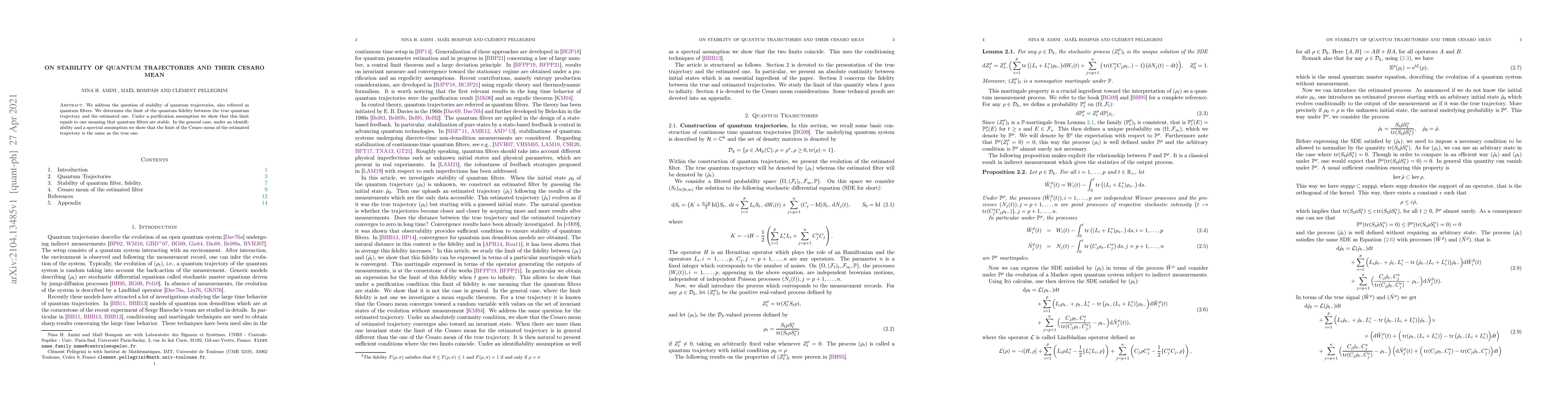 We address the question of stability of quantum trajectories, also referred as quantum filters}. We determine the limit of the quantum fidelity between the true quantum trajectory and the {estimated one}. Under a purification assumption we show that this limit equals to one meaning that quantum filters are stable. In the general case, under an identifiability and a spectral assumption we show that the limit of the Cesaro mean of the estimated trajectory is the same as the true one.