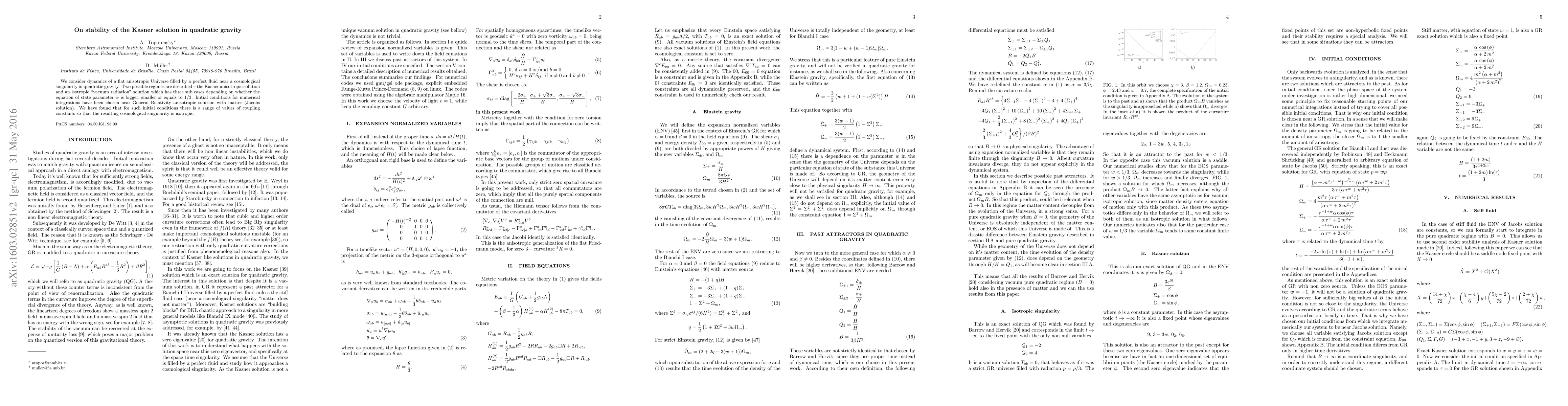 We consider dynamics of a flat anisotropic Universe filled by a perfect fluid near a cosmological singularity in quadratic gravity. Two possible regimes are described -- the Kasner anisotropic solution and an isotropic "vacuum radiation" solution which has three sub cases depending on whether the equation of state parameter $w$ is bigger, smaller or equals to $1/3$. Initial conditions for numerical integrations have been chosen near General Relativity anisotropic solution with matter (Jacobs solution). We have found that for such initial conditions there is a range of values of coupling constants so that the resulting cosmological singularity is isotropic.