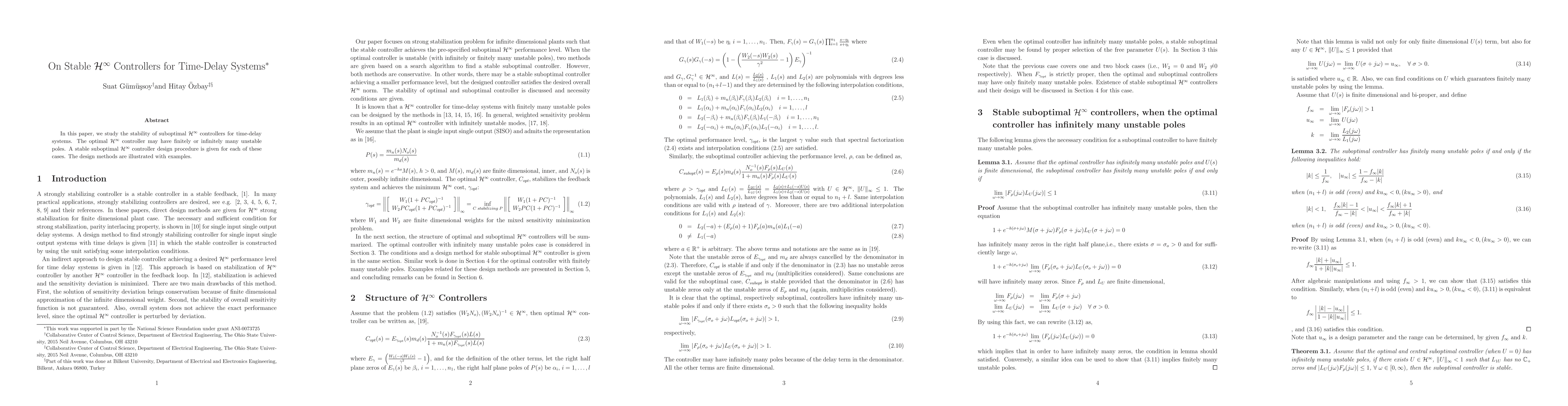 This paper presents a design procedure for stable suboptimal H-infinity controllers for time-delay systems, addressing cases with both finitely and infinitely many unstable poles. Examples are provided to illustrate the proposed methods.