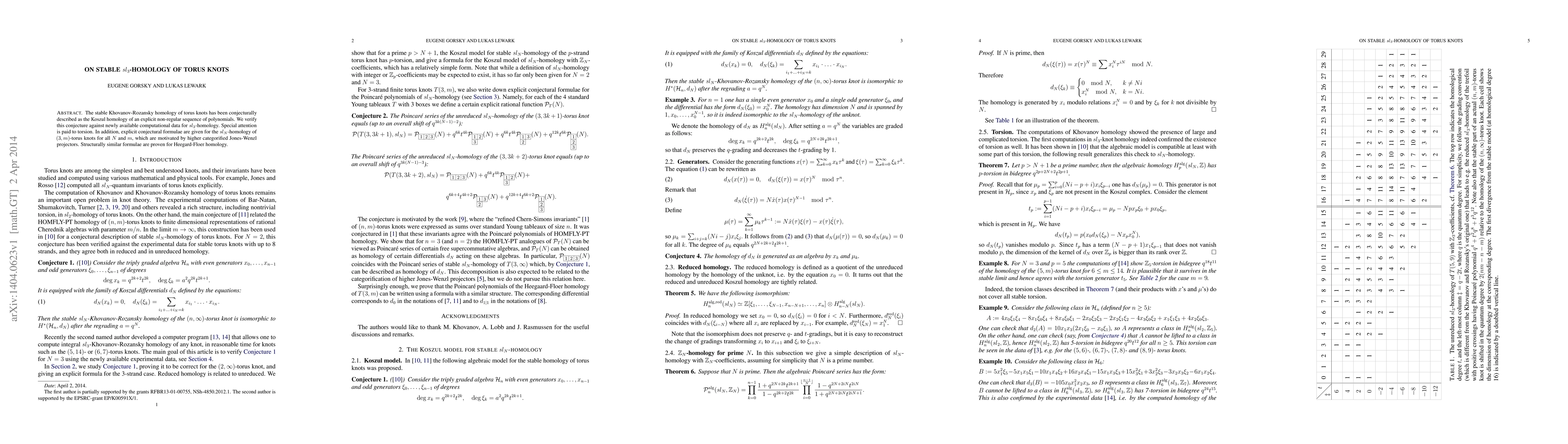 The stable Khovanov-Rozansky homology of torus knots has been conjecturally described as the Koszul homology of an explicit non-regular sequence of polynomials. We verify this conjecture against newly available computational data for sl(3)-homology. Special attention is paid to torsion. In addition, explicit conjectural formulae are given for the sl(N)-homology of (3,m)-torus knots for all N and m, which are motivated by higher categorified Jones-Wenzl projectors. Structurally similar formulae are proven for Heegard-Floer homology.