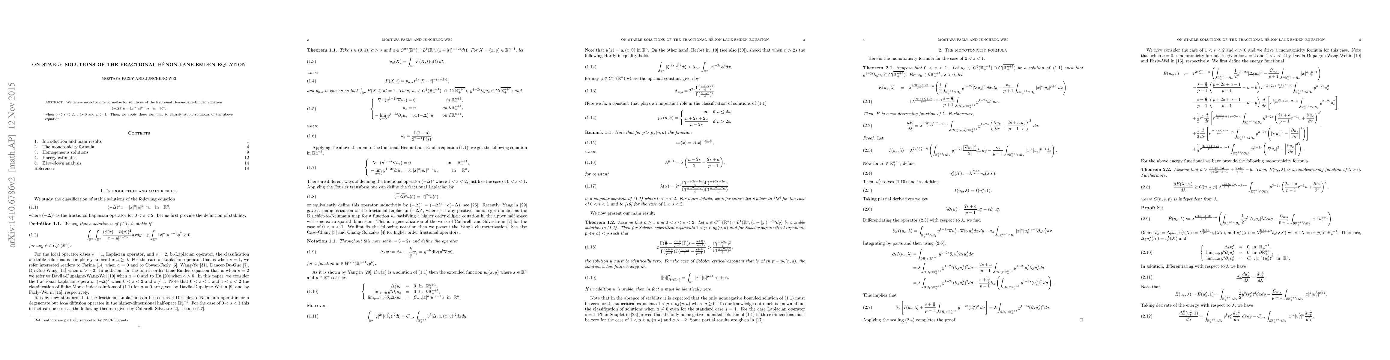 This paper derives monotonicity formulae for solutions of the fractional Hénon-Lane-Emden equation, and uses these to classify stable solutions under specified conditions on parameters $s$, $a$, and $p$.