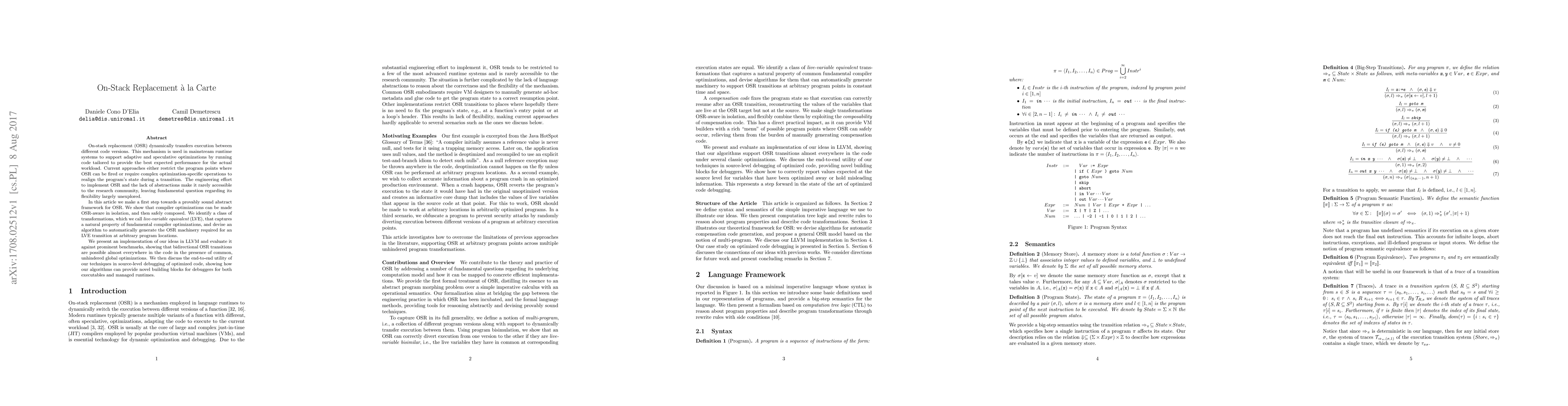 On-stack replacement (OSR) dynamically transfers execution between different code versions. This mechanism is used in mainstream runtime systems to support adaptive and speculative optimizations by running code tailored to provide the best expected performance for the actual workload. Current approaches either restrict the program points where OSR can be fired or require complex optimization-specific operations to realign the program's state during a transition. The engineering effort to implement OSR and the lack of abstractions make it rarely accessible to the research community, leaving fundamental question regarding its flexibility largely unexplored. In this article we make a first step towards a provably sound abstract framework for OSR. We show that compiler optimizations can be made OSR-aware in isolation, and then safely composed. We identify a class of transformations, which we call live-variable equivalent (LVE), that captures a natural property of fundamental compiler optimizations, and devise an algorithm to automatically generate the OSR machinery required for an LVE transition at arbitrary program locations. We present an implementation of our ideas in LLVM and evaluate it against prominent benchmarks, showing that bidirectional OSR transitions are possible almost everywhere in the code in the presence of common, unhindered global optimizations. We then discuss the end-to-end utility of our techniques in source-level debugging of optimized code, showing how our algorithms can provide novel building blocks for debuggers for both executables and managed runtimes.