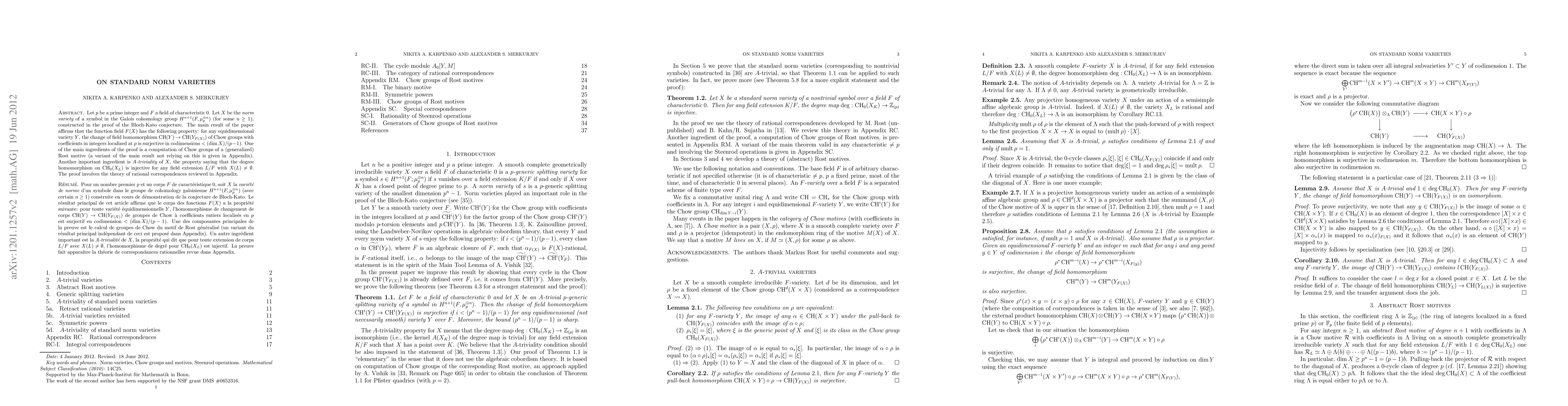 Let $p$ be a prime integer and $F$ a field of characteristic 0. Let $X$ be the {\em norm variety} of a symbol in the Galois cohomology group $H^{n+1}(F,\mu_p^{\otimes n})$ (for some $n\geq1$), constructed in the proof of the Bloch-Kato conjecture. The main result of the paper affirms that the function field $F(X)$ has the following property: for any equidimensional variety $Y$, the change of field homomorphism $\CH(Y)\to\CH(Y_{F(X)})$ of Chow groups with coefficients in integers localized at $p$ is surjective in codimensions $< (\dim X)/(p-1)$. One of the main ingredients of the proof is a computation of Chow groups of a (generalized) Rost motive (a variant of the main result not relying on this is given in Appendix). Another important ingredient is {\em $A$-triviality} of $X$, the property saying that the degree homomorphism on $\CH_0(X_L)$ is injective for any field extension $L/F$ with $X(L)\ne\emptyset$. The proof involves the theory of rational correspondences reviewed in Appendix.