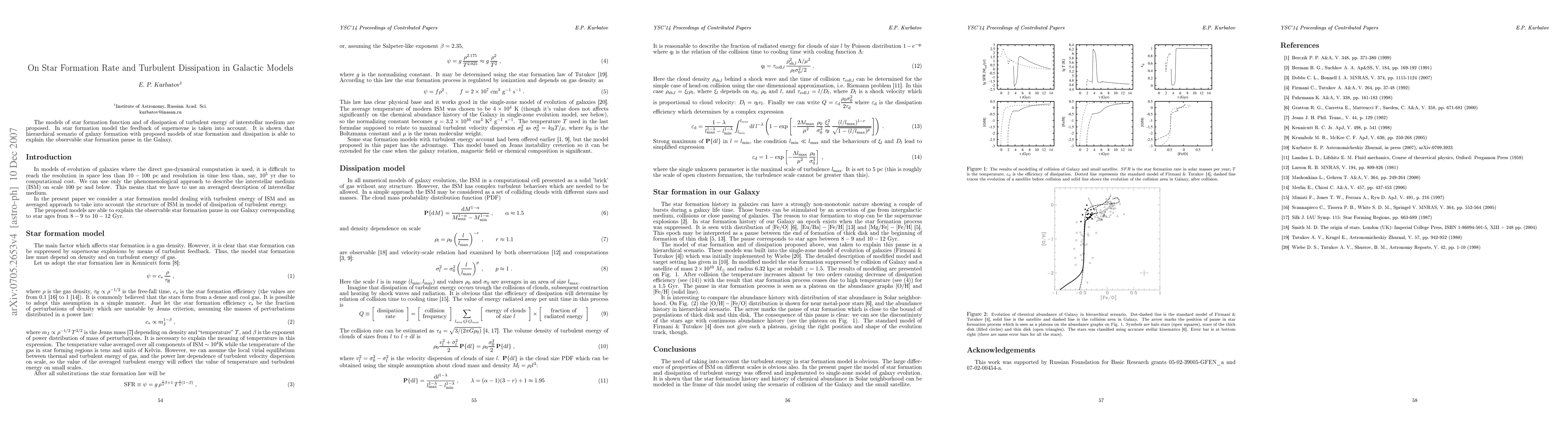 The models of star formation function and of dissipation of turbulent energy of interstellar medium are proposed. In star formation model the feedback of supernovae is taken into account. It is shown that hierarchical scenario of galaxy formation with proposed models is able to explain the observable star formation pause in the Galaxy.