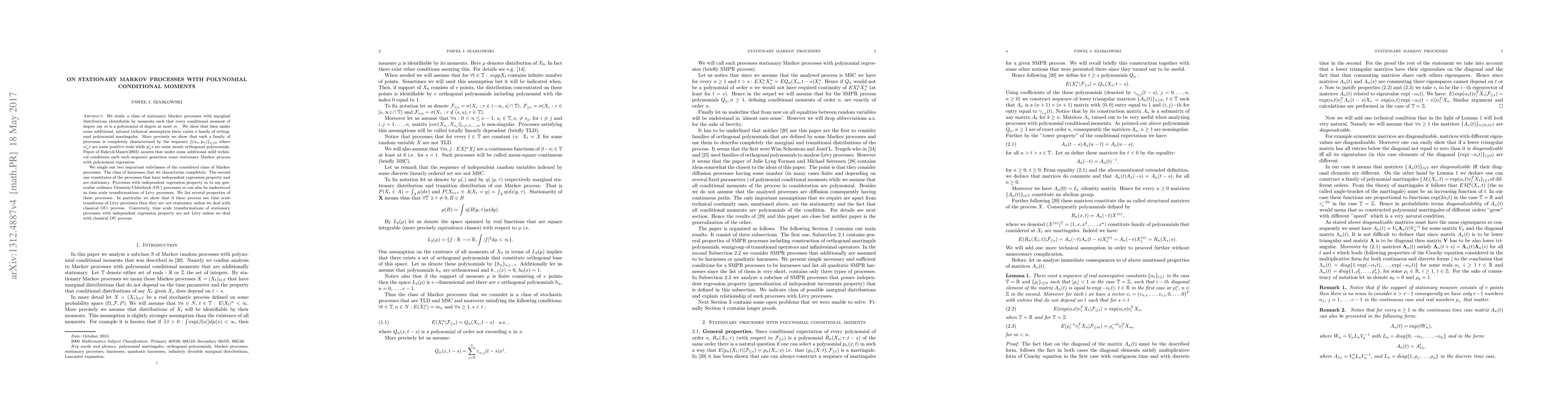 This paper explores stationary Markov processes whose conditional moments are polynomial. It demonstrates that under certain conditions, such processes possess a family of orthogonal polynomial martingales, characterized by sequences of positive reals and orthogonal polynomials. The study also identifies two subclasses: harnesses and processes with independent regression, highlighting their properties and relationships to Lévy processes.