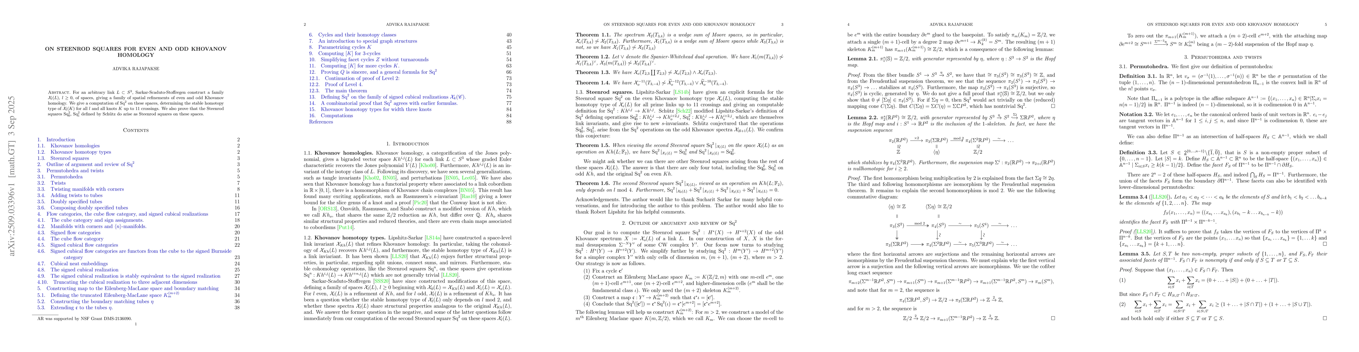 For an arbitrary link $L \subset S^3$ , Sarkar-Scaduto-Stoffregen construct a family of spatial refinements of even and odd Khovanov homology. We give a computation of $\text{Sq}^2$ on these spaces, determining their stable homotopy types for all knots K up to 11 crossings. We also prove that the Steenrod squares $\text{Sq}_0^2$ , $\text{Sq}_1^2$ defined by Sch\"utz do arise as Steenrod squares on these spaces.