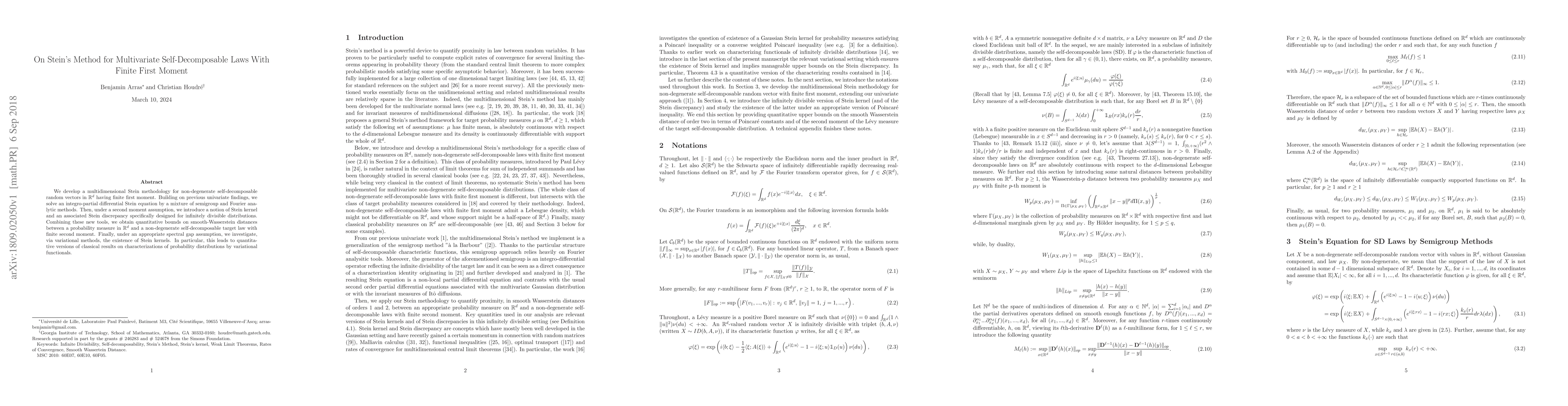 This paper develops a multidimensional Stein method for self-decomposable random vectors in $\mathbb{R}^d$ with finite first moment, solving an integro-partial differential Stein equation. It introduces a Stein kernel for infinitely divisible distributions and provides quantitative bounds on smooth-Wasserstein distances.