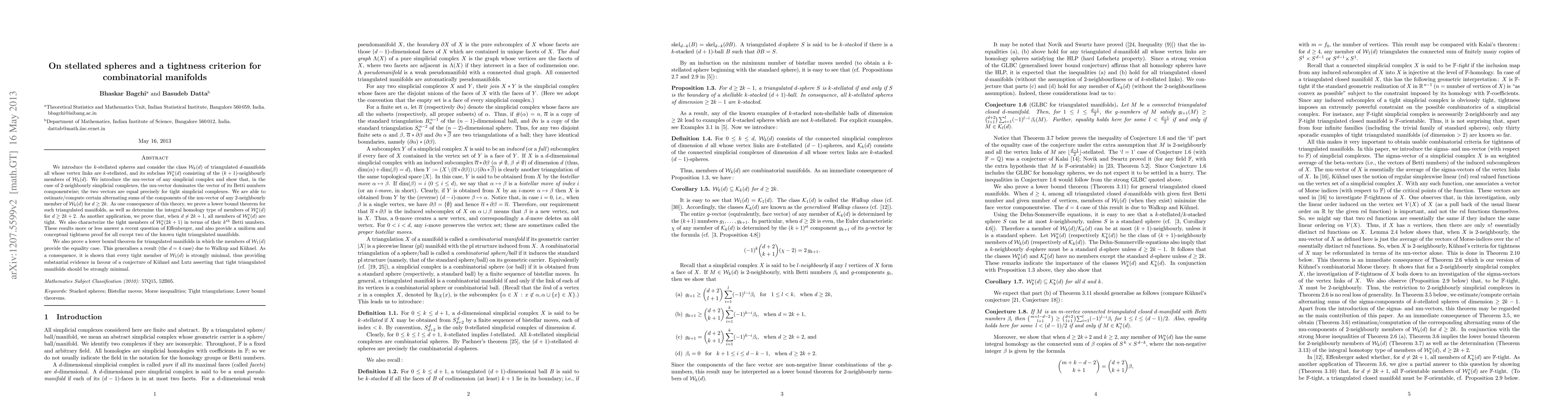 This paper introduces $k$-stellated spheres and studies triangulated $d$-manifolds with $k$-stellated vertex links, proving that their mu-vectors dominate Betti number vectors, especially for tight complexes. It establishes lower bounds for triangulated manifolds and characterizes tight members of specific subclasses, providing evidence supporting a conjecture that tight triangulated manifolds are strongly minimal.