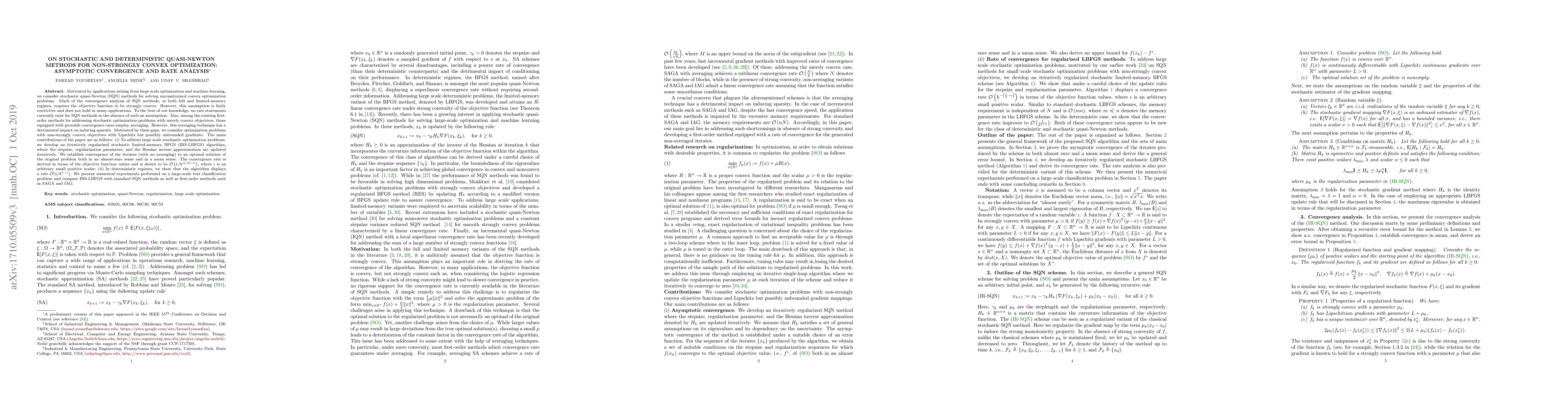 This paper introduces stochastic quasi-Newton methods for non-strongly convex optimization problems, achieving almost-sure and mean convergence with a rate of O(k^(-1/3 + μe)) in the stochastic regime and O(1/k^(1-λ')) in the deterministic regime.