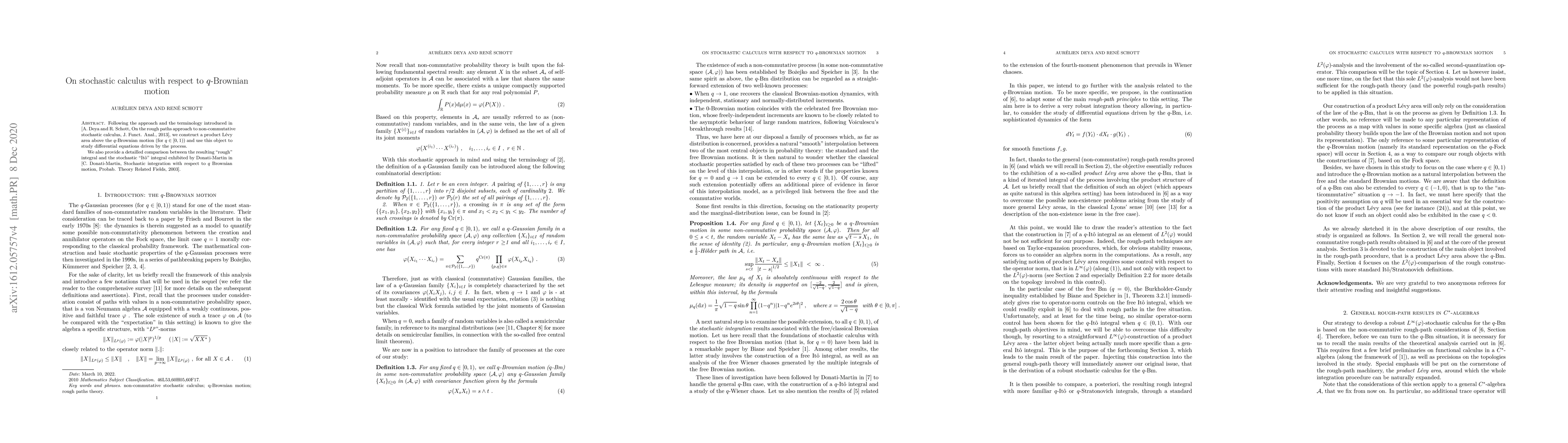 Following the approach and the terminology introduced in [A. Deya and R. Schott, On the rough paths approach to non-commutative stochastic calculus, J. Funct. Anal., 2013], we construct a product L{\'e}vy area above the $q$-Brownian motion (for $q\in [0,1)$) and use this object to study differential equations driven by the process.We also provide a detailled comparison between the resulting "rough" integral and the stochastic "It{\^o}" integral exhibited by Donati-Martin in [C. Donati-Martin, Stochastic integration with respect to $q$ Brownian motion, Probab. Theory Related Fields, 2003].
