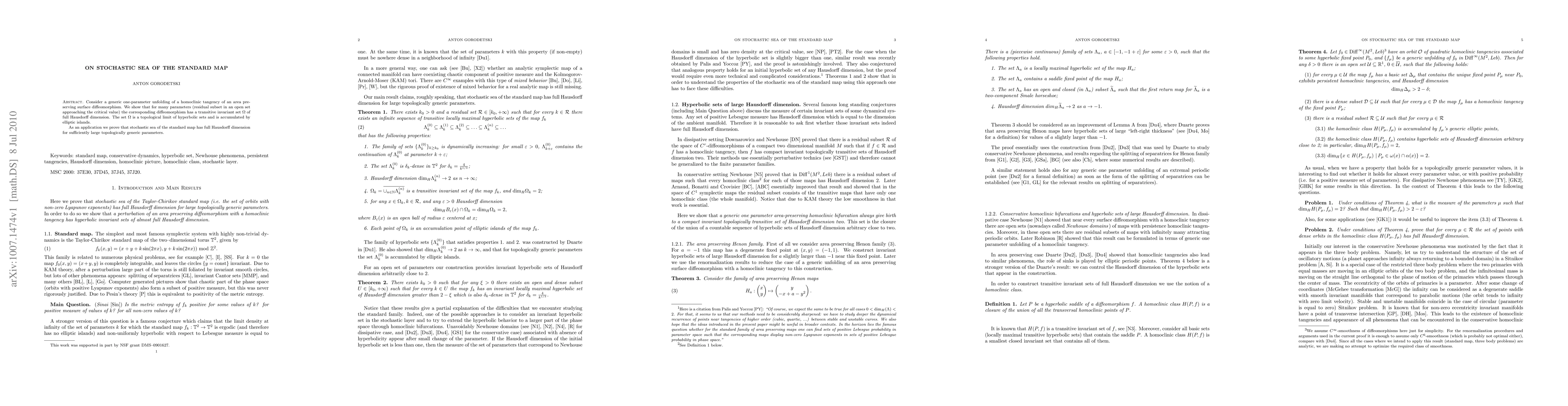 This paper demonstrates that a one-parameter unfolding of a homoclinic tangency in an area-preserving surface diffeomorphism results in a transitive invariant set of full Hausdorff dimension, accumulated by elliptic islands. It concludes by proving the stochastic sea of the standard map has full Hausdorff dimension for sufficiently large, topologically generic parameters.