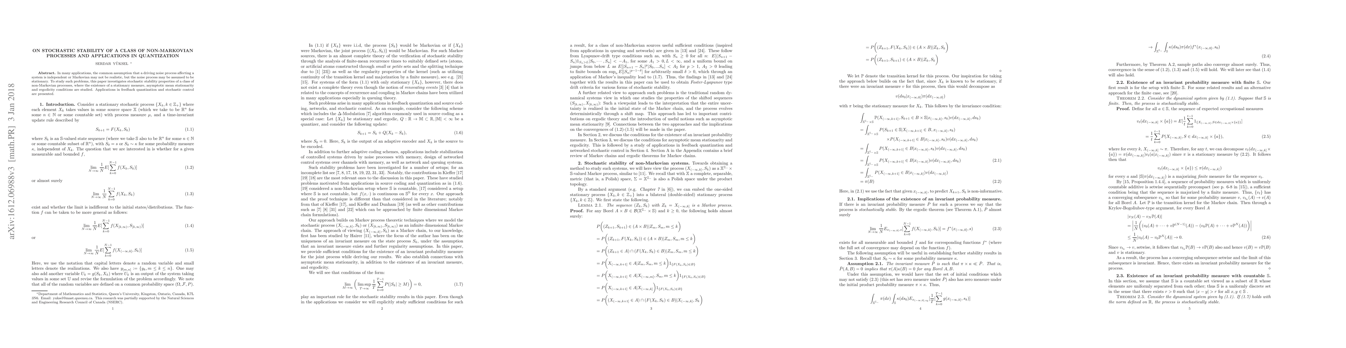 This paper explores stochastic stability in non-Markovian processes, focusing on stationary noise without Markovian assumptions. It examines stationary measures, asymptotic mean stationarity, and ergodicity, with applications in feedback quantization and stochastic control.