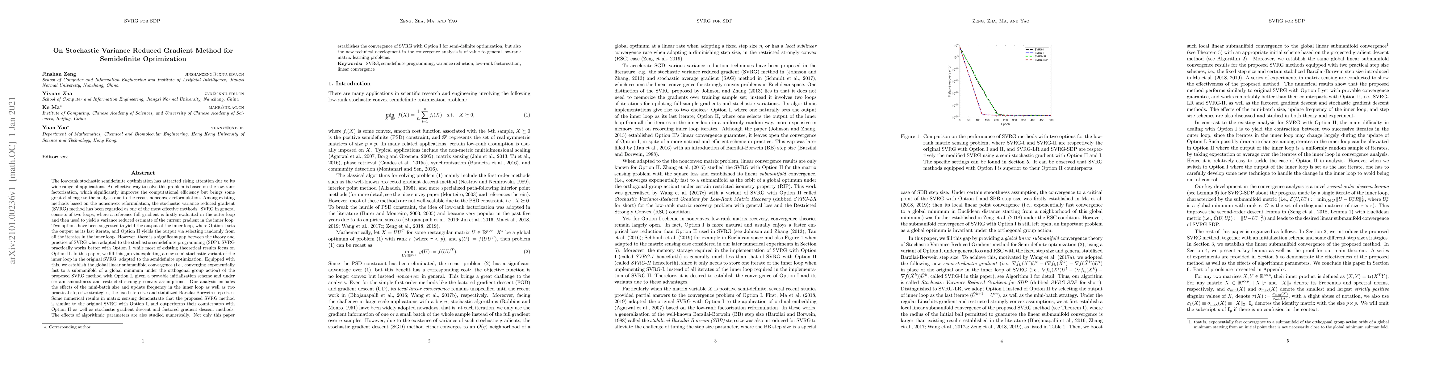 This paper develops a new semi-stochastic variant of the stochastic variance reduced gradient (SVRG) method for semidefinite optimization, which converges exponentially fast to a global minimum under certain assumptions.