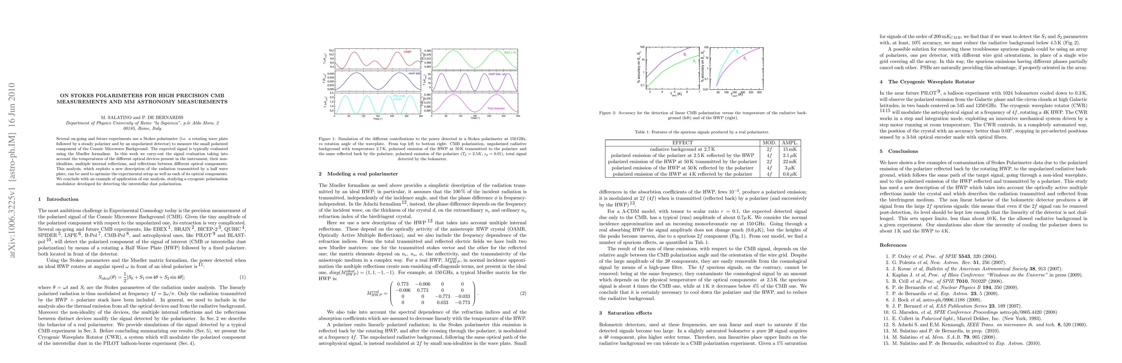Several on-going and future experiments use a Stokes polarimeter (i.e. a rotating wave plate followed by a steady polarizer and by an unpolarized detector) to measure the small polarized component of the Cosmic Microwave Background. The expected signal is typically evaluated using the Mueller formalism. In this work we carry-out the signal evaluation taking into account the temperatures of the different optical devices present in the instrument, their non- idealities, multiple internal reflections, and reflections between different optical components. This analysis, which exploits a new description of the radiation transmitted by a half wave plate, can be used to optimize the experimental setup as well as each of its optical components. We conclude with an example of application of our analysis, studying a cryogenic polarization modulator developed for detecting the interstellar dust polarization.