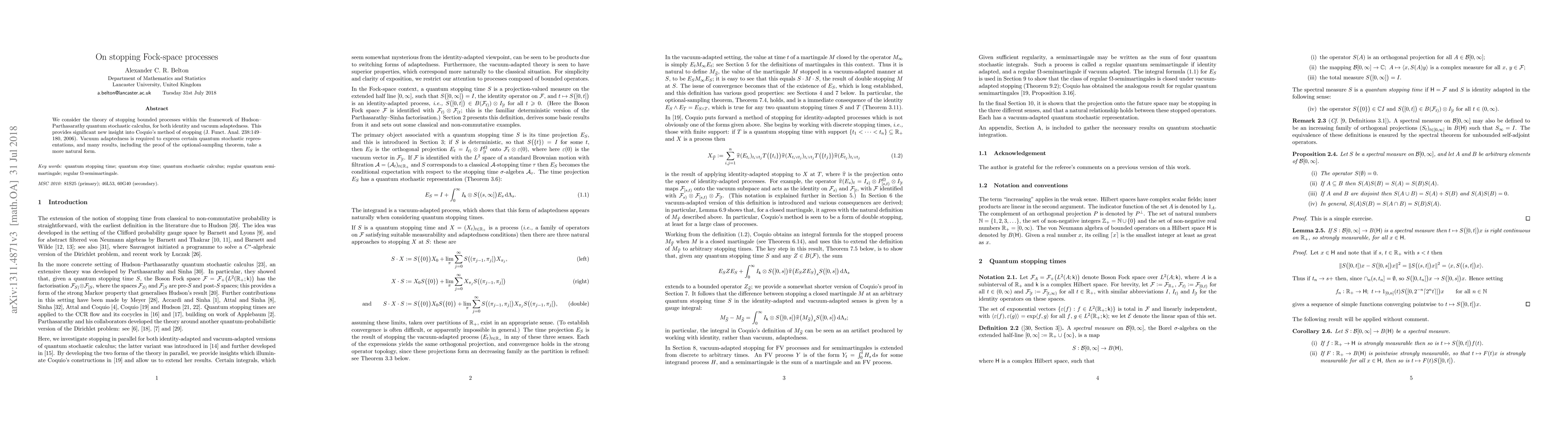 This paper explores stopping bounded processes in Hudson-Parthasarathy quantum stochastic calculus, emphasizing identity and vacuum adaptedness, which enhances Coquio's stopping method and simplifies the proof of the optional-sampling theorem.