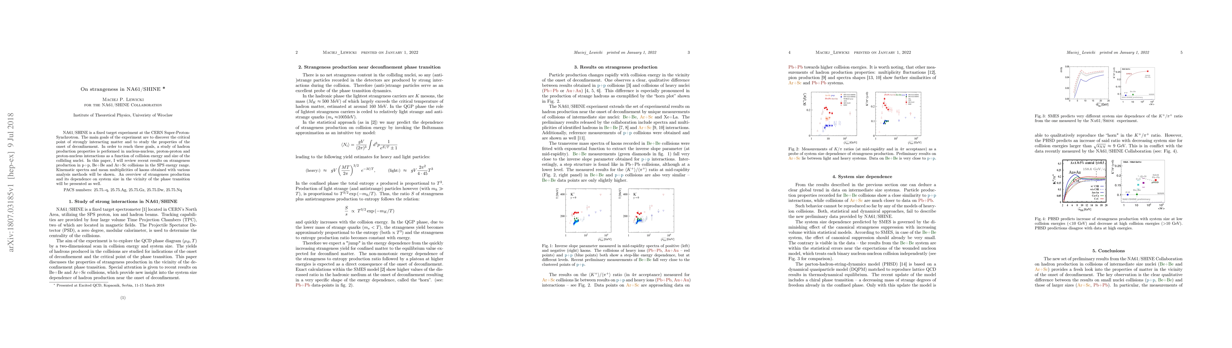 This paper reviews recent results on strangeness production in high-energy particle collisions, focusing on the critical point of strongly interacting matter and deconfinement, with key findings on kaon multiplicities and system size dependence.