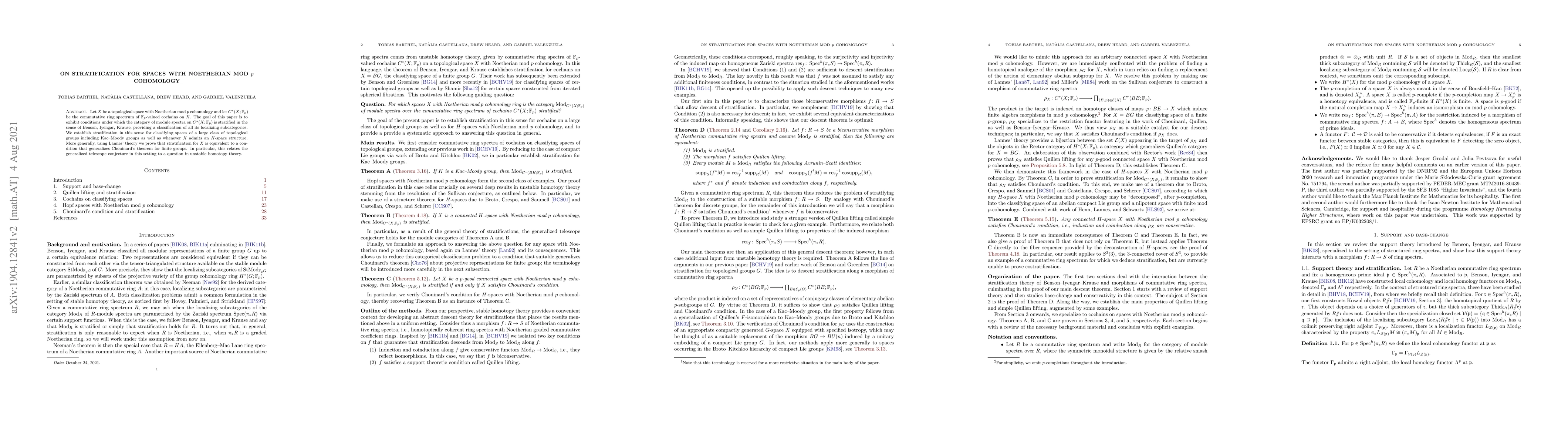 This paper investigates stratification conditions in module spectra on a commutative ring spectrum of cochains on a topological space with Noetherian mod p cohomology, leading to classification of localizing subcategories for specific types of spaces.