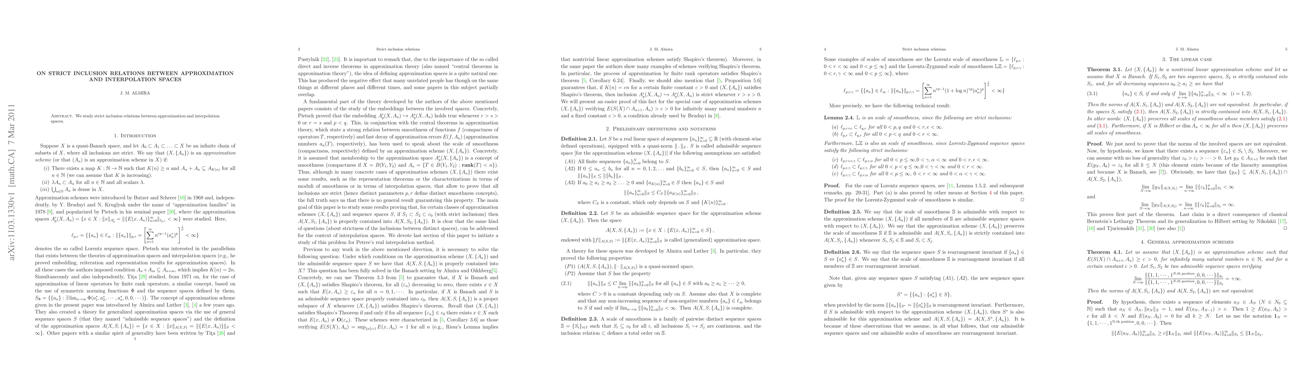 This paper studies relationships between approximation and interpolation spaces, focusing on strict inclusion relations. It explores how these two types of function spaces interact and impact mathematical modeling and problem-solving.