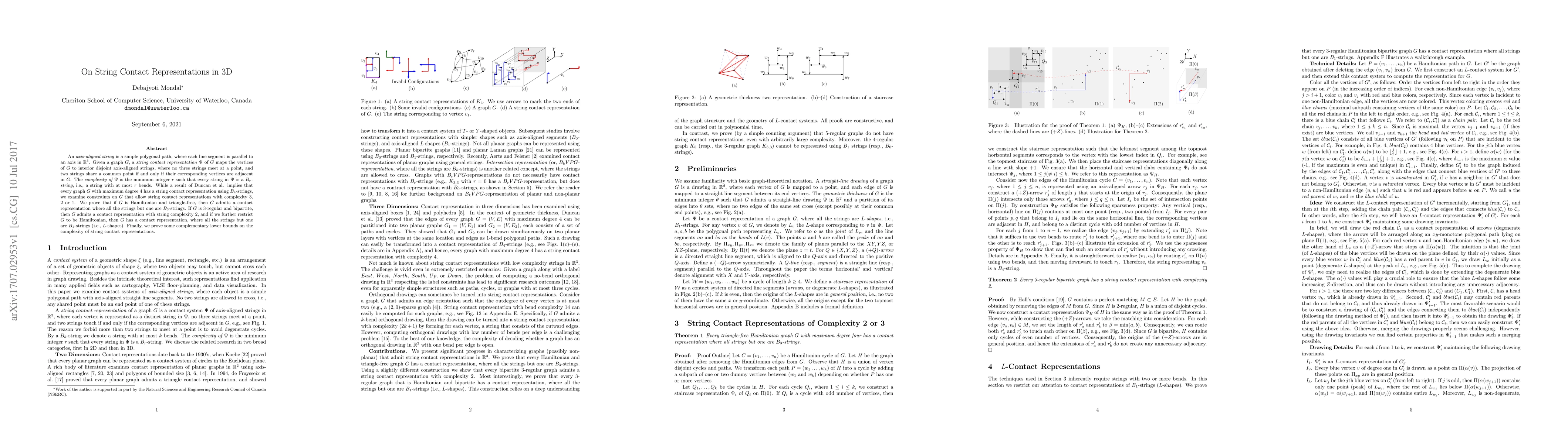 An axis-aligned string is a simple polygonal path, where each line segment is parallel to an axis in $\mathbb{R}^3$. Given a graph $G$, a string contact representation $\Psi$ of $G$ maps the vertices of $G$ to interior disjoint axis-aligned strings, where no three strings meet at a point, and two strings share a common point if and only if their corresponding vertices are adjacent in $G$. The complexity of $\Psi$ is the minimum integer $r$ such that every string in $\Psi$ is a $B_r$-string, i.e., a string with at most $r$ bends. While a result of Duncan et al. implies that every graph $G$ with maximum degree 4 has a string contact representation using $B_4$-strings, we examine constraints on $G$ that allow string contact representations with complexity 3, 2 or 1. We prove that if $G$ is Hamiltonian and triangle-free, then $G$ admits a contact representation where all the strings but one are $B_3$-strings. If $G$ is 3-regular and bipartite, then $G$ admits a contact representation with string complexity 2, and if we further restrict $G$ to be Hamiltonian, then $G$ has a contact representation, where all the strings but one are $B_1$-strings (i.e., $L$-shapes). Finally, we prove some complementary lower bounds on the complexity of string contact representations.